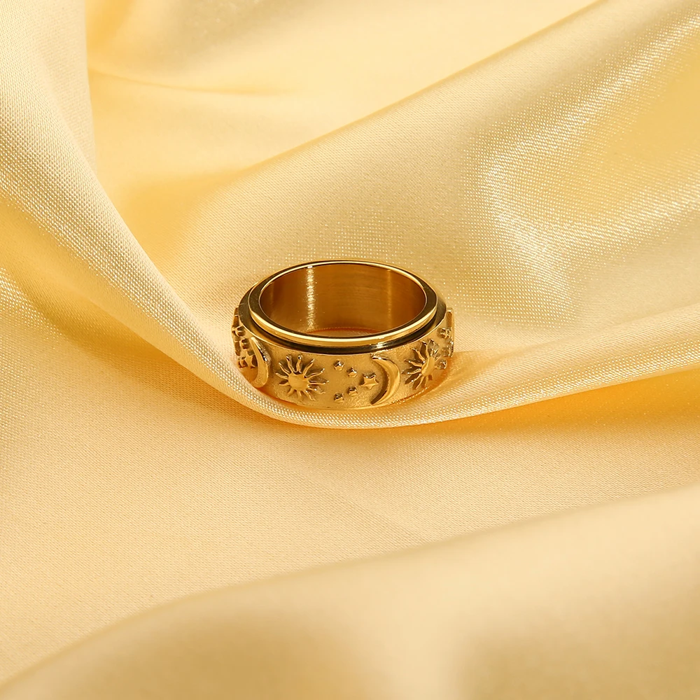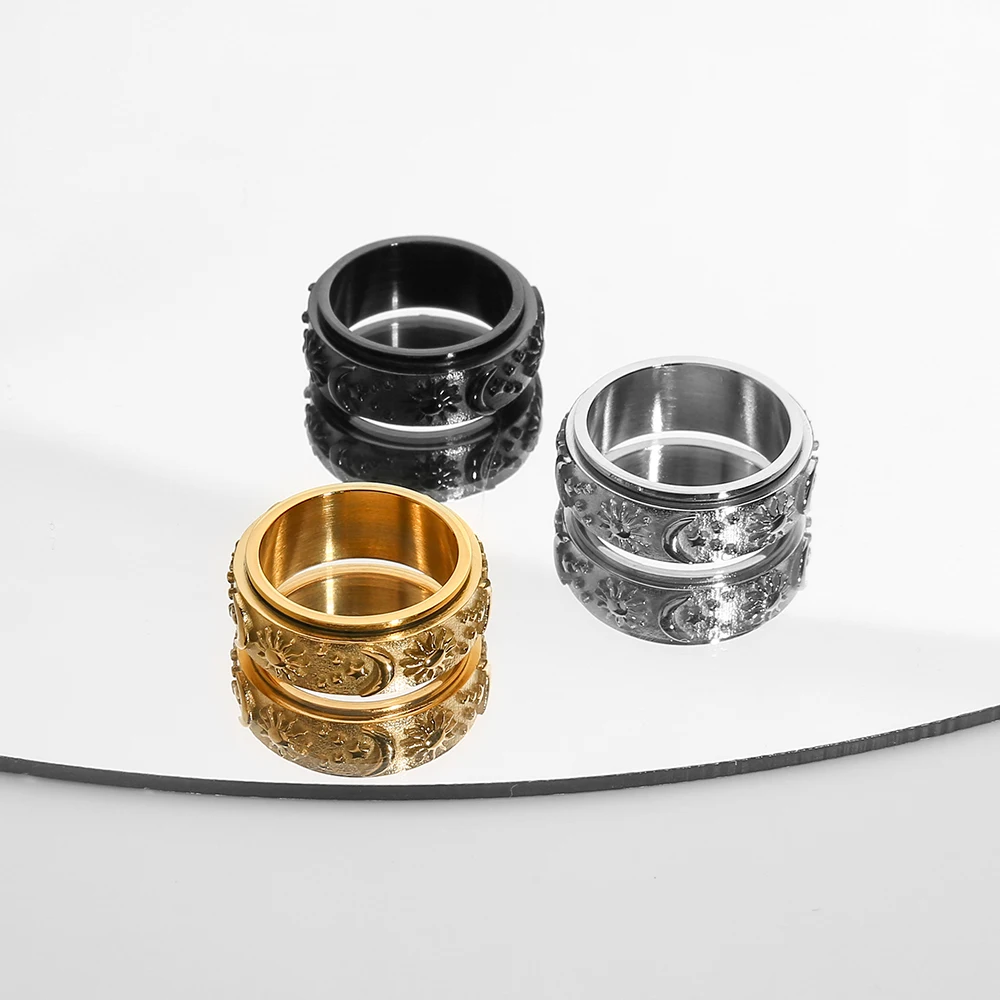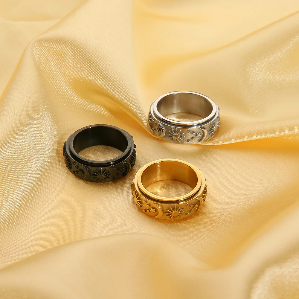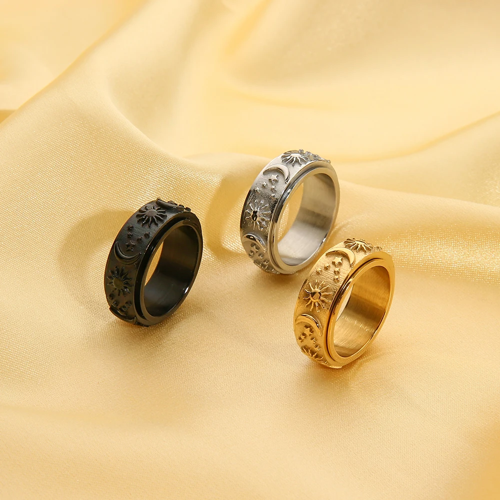 Прямая поставка, вращающееся кольцо из титановой стали, звезда, луна, солнце, кольцо унисекс в богемном стиле, кольцо из нержавеющей стали, оптовая продажа ювелирных изделий