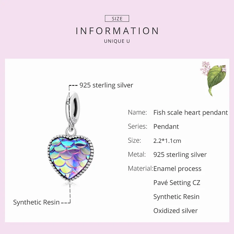 Подвеска из серебра 925 пробы в виде рыбьей чешуи