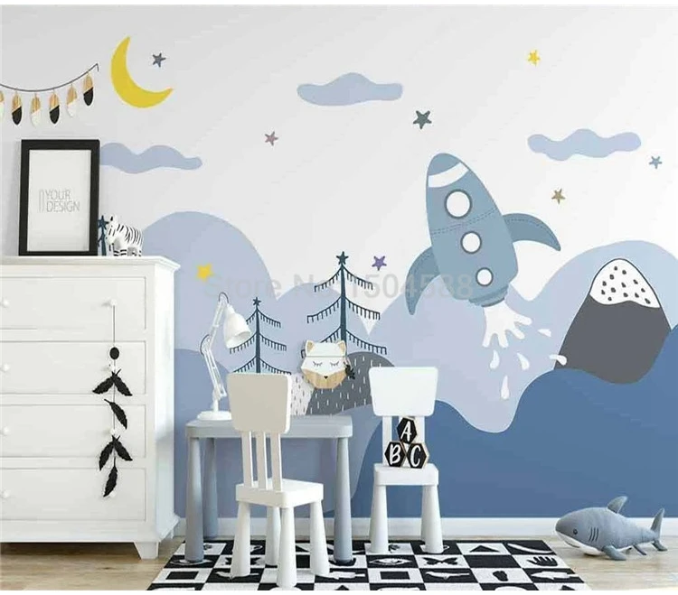 Скандинавский мультфильм ракета милые облака детская комната роспись Настенные обои фон настенная живопись Papel De Parede домашний декор