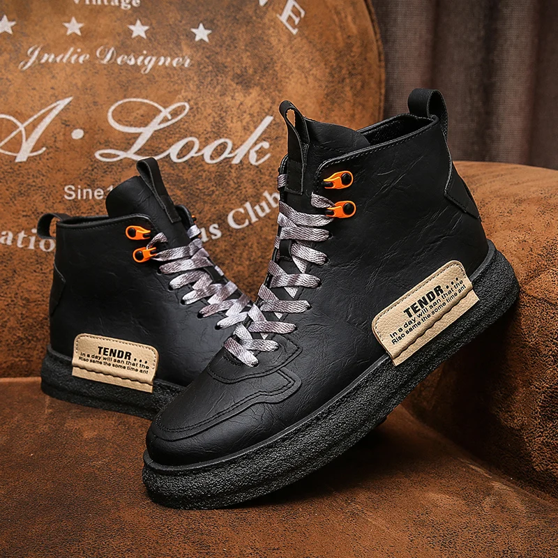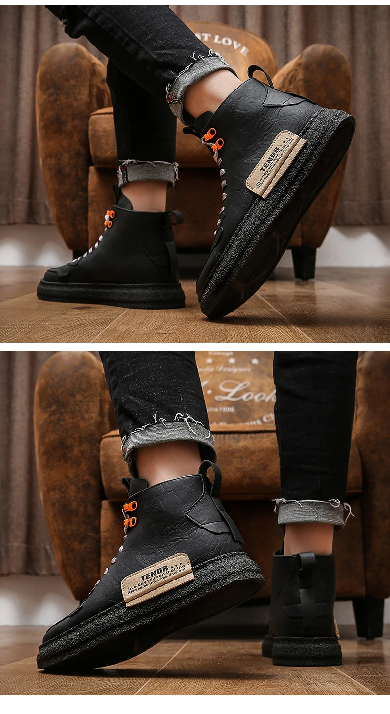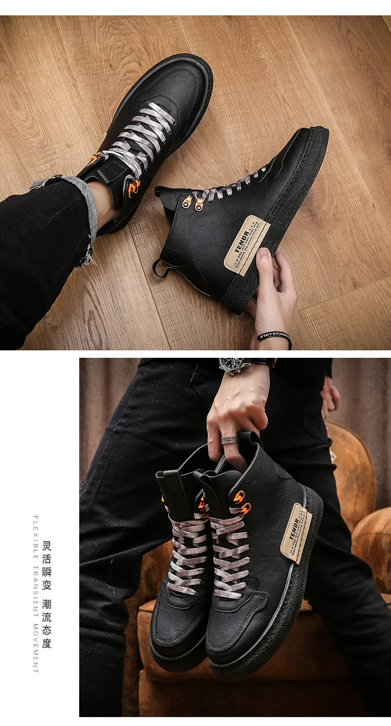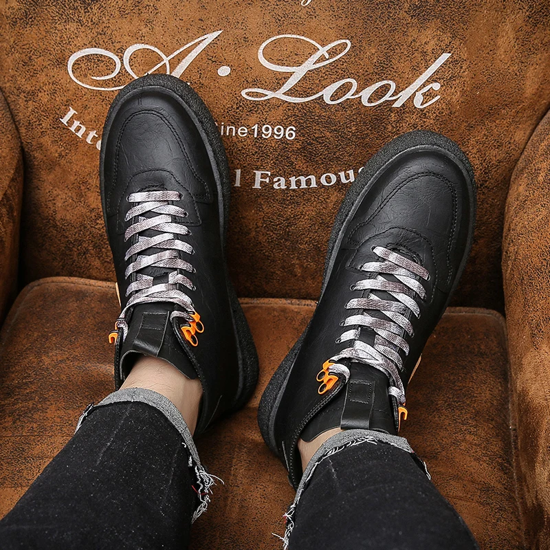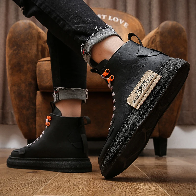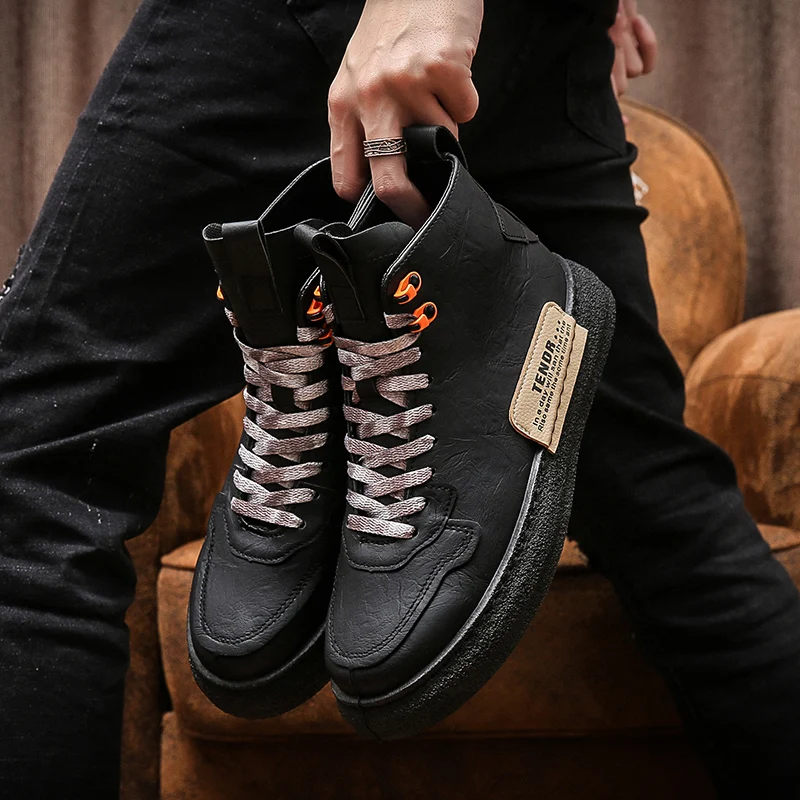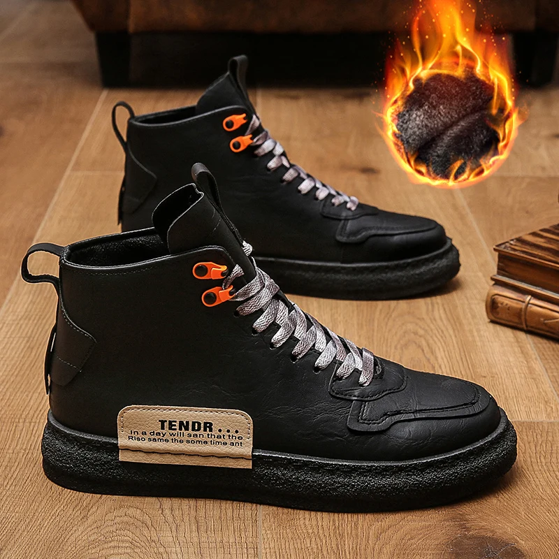 Мужские высокие кожаные кроссовки на толстой подошве, повседневные модные однотонные Ботинки Martin с бархатной подкладкой, оригинальные зимние мужские ботинки