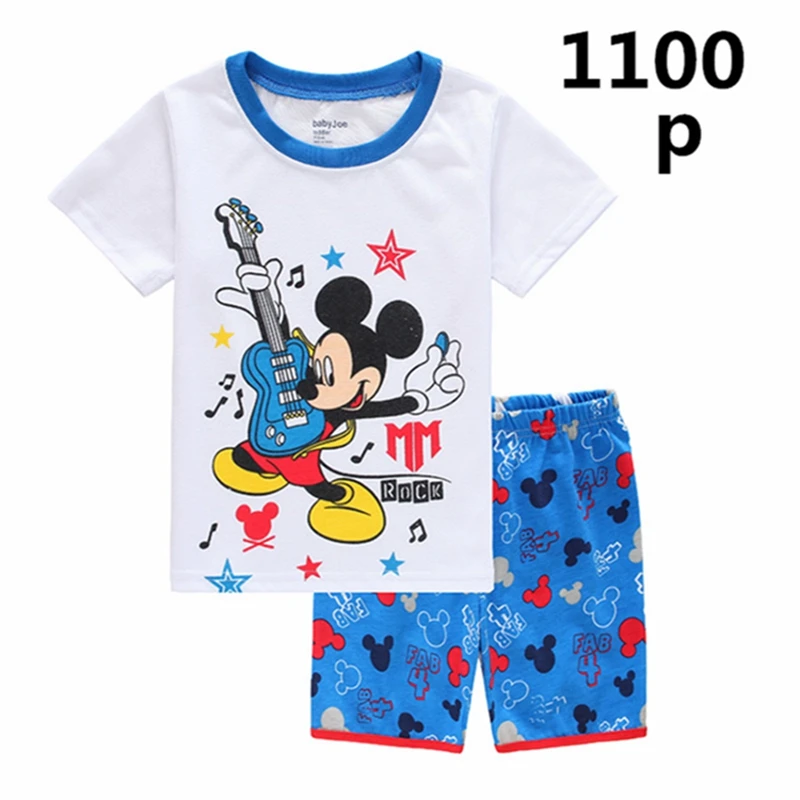 Детские пижамы, летняя одежда для девочек, детские комплекты, одежда для сна с короткими рукавами, детские пижамы с мультяшным Микки, футболка и штаны для маленьких мальчиков