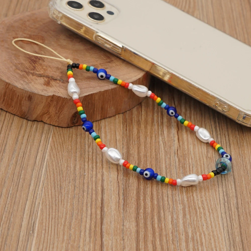 Описание товара Товар: мобильный телефон с бусинамиМатериал: глина, искусственный жемчуг, натуральная оболочка, стеклянные бусины со сглазаРазмер около 26 см + 5 смПосылка: 1 шт. ремешок для телефона в сумке;