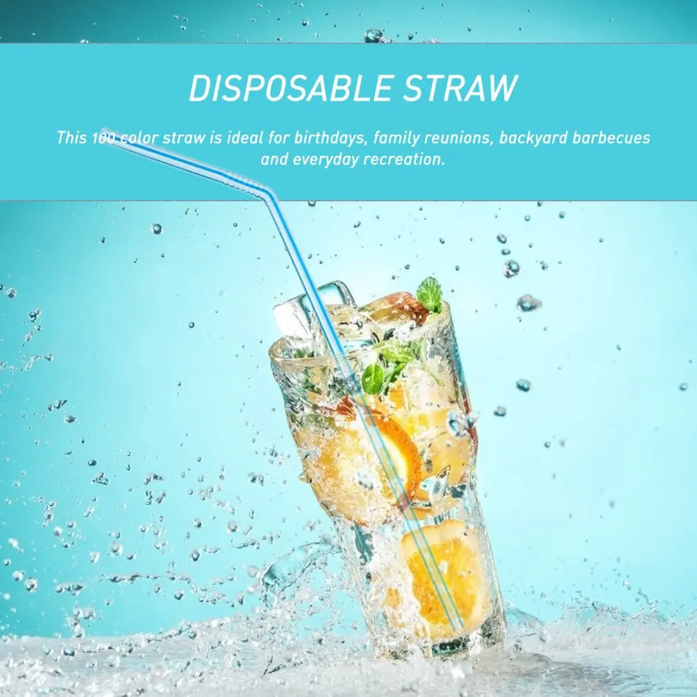 100 шт., гибкие пластиковые соломинки для напитков