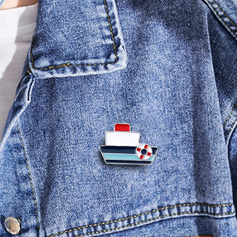 Мультяшный Круизный корабль, металлические эмалевые булавки с капельным маслом, индивидуальная эмблема лодки, значок, ювелирные изделия, подарок для друзей, детей, оптовая продажа