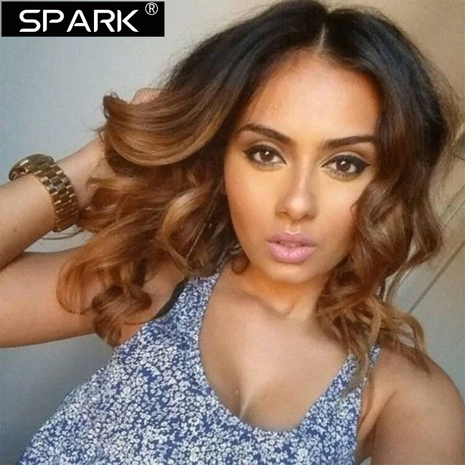 Омбре коричневый волнистый короткий боб парики объемная волна T часть кружевные Парики Бразильский Реми цветной короткий Боб Омбре 1B 30 человеческие волосы парик