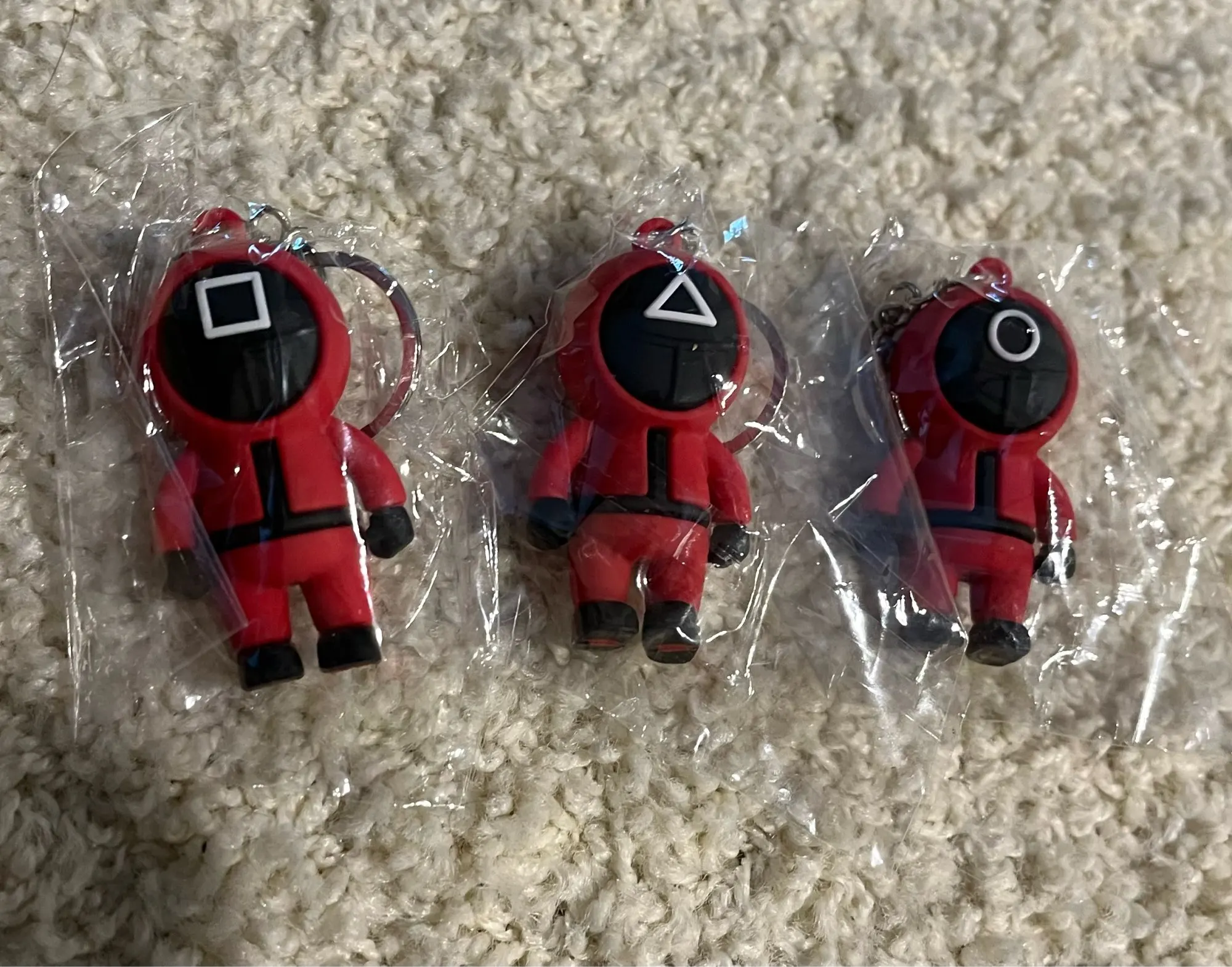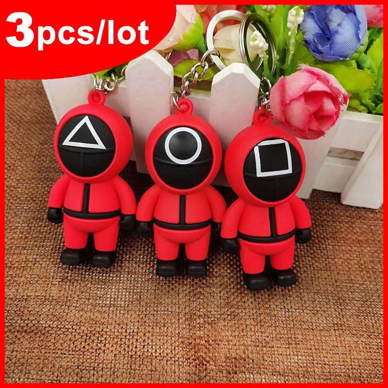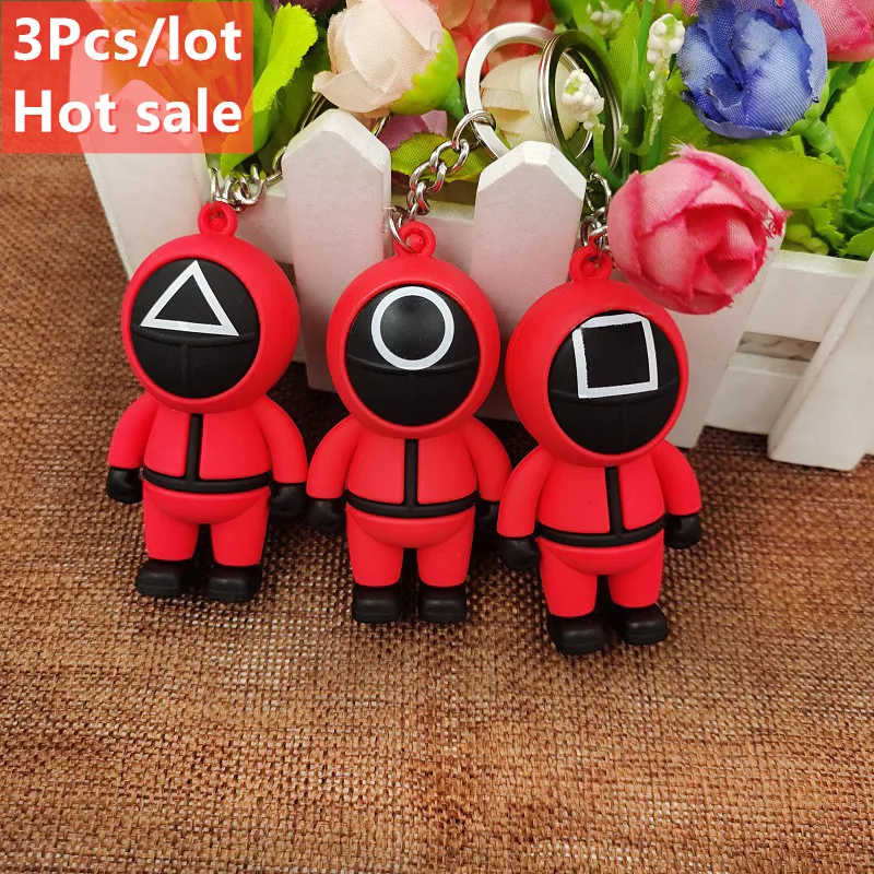 Брелок 3 шт.лот, брелок с подвесками в виде фигурок из игры кальмар, аксессуары для женщин, мужчин, детей, брелок для ключей, подарок