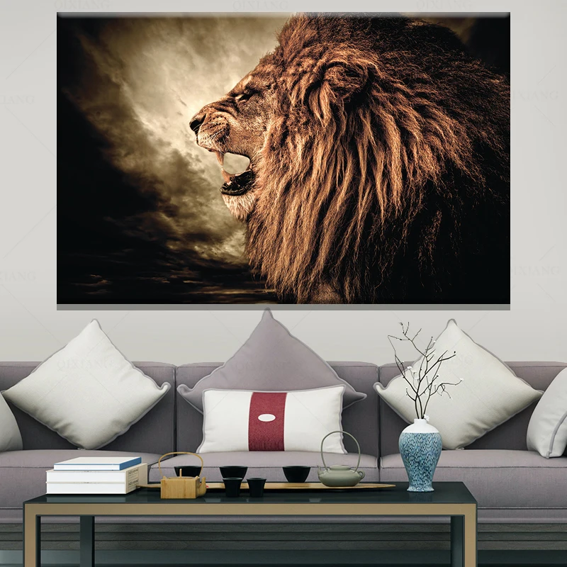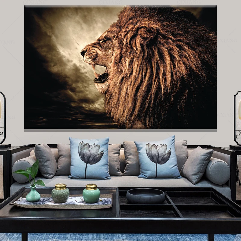Картина на холсте с изображением дикой травы, зверя, короля, Льва, животных, абстрактный постер в скандинавском стиле, картина для украшения дома