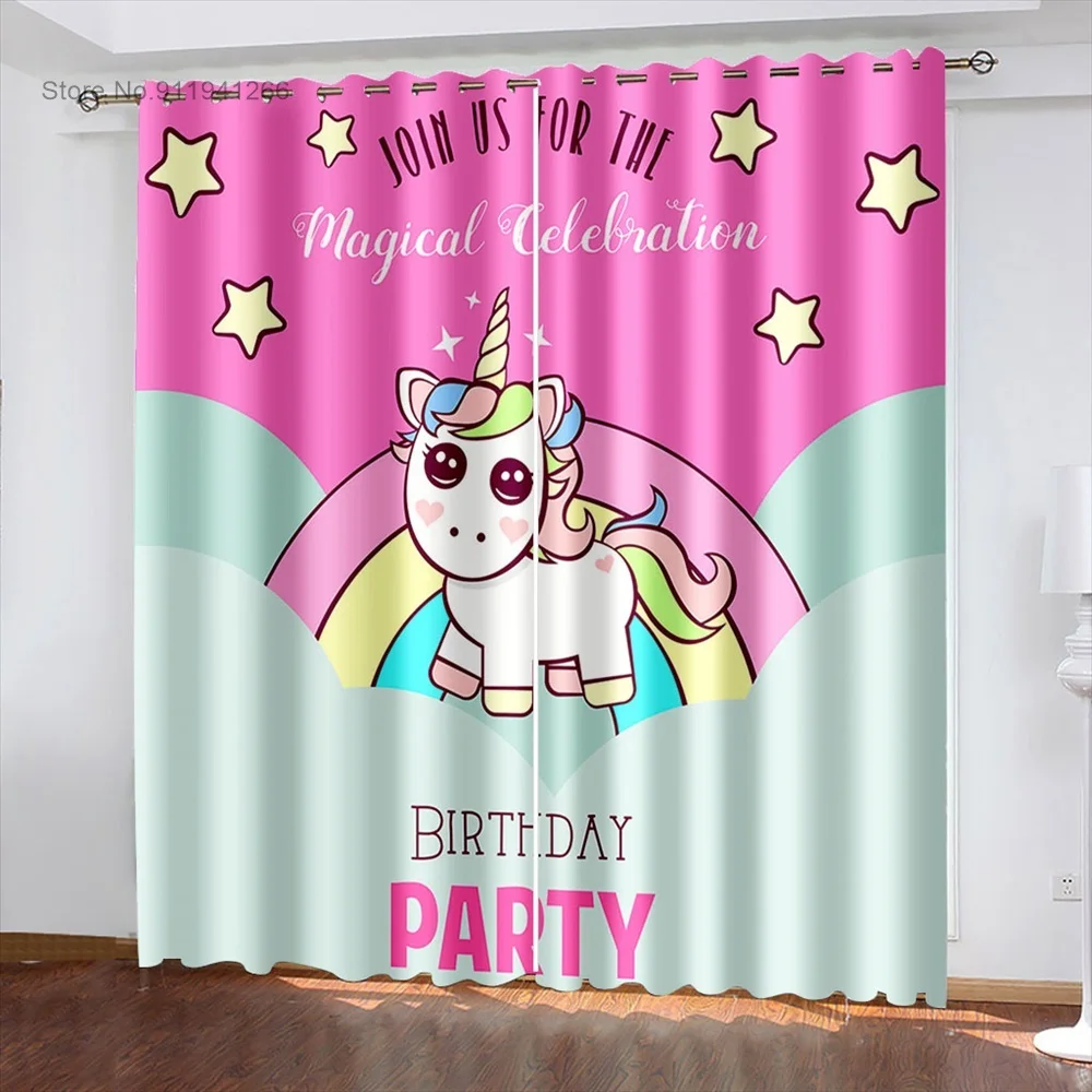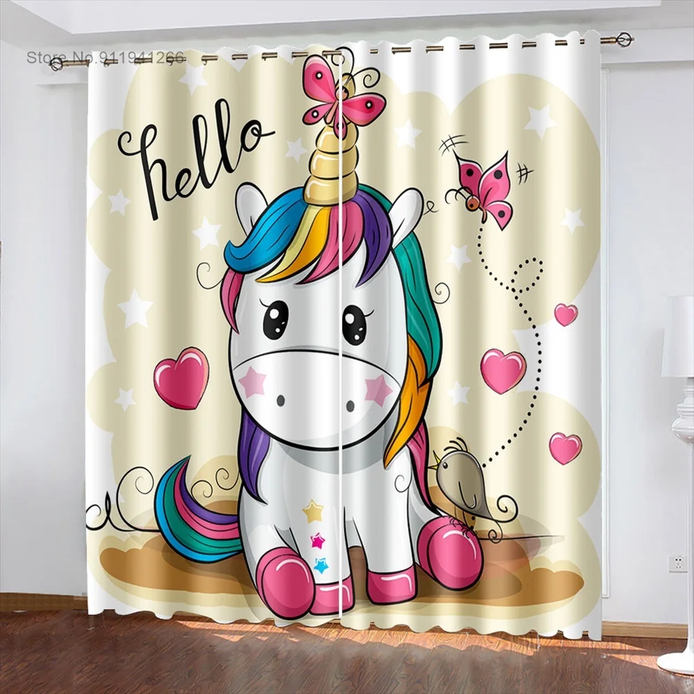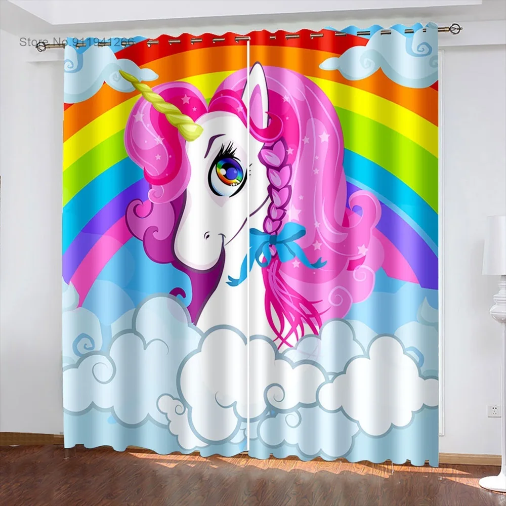 Затемняющие оконные шторы с 3D принтом единорога для гостиной, Мультяшные оконные драпировки, декор для спальни, полиэстеровый домашний текстиль