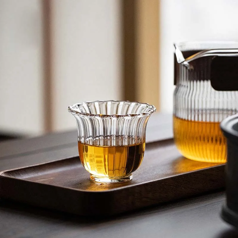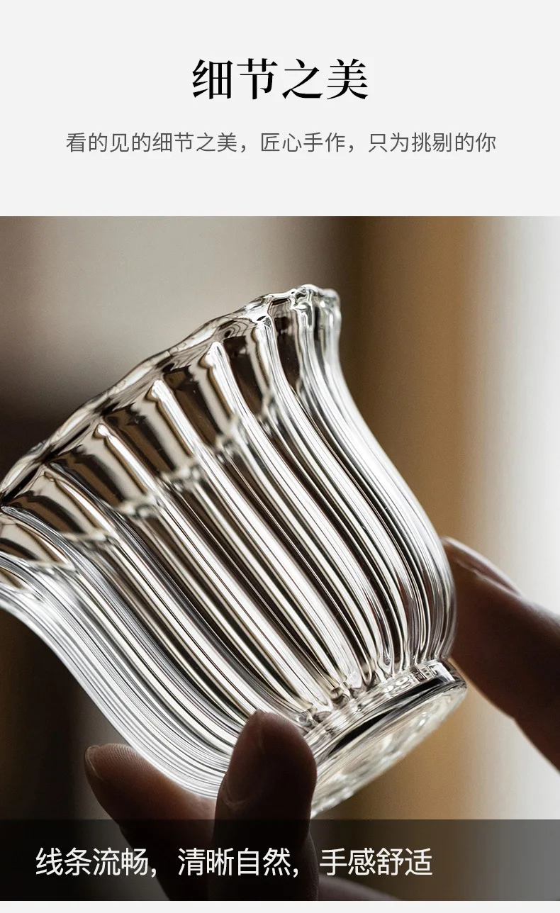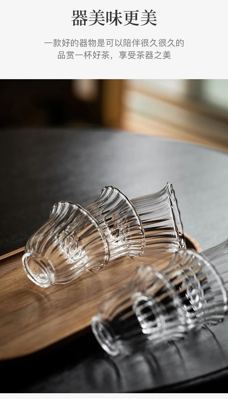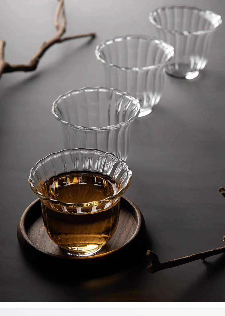 Чайные чашки в японском стиле, волнистые чашки для черного чая, чайная чашка, мастер-чашка небольшого объема, 100 мл, 1 шт., Термостойкое стекло для сакэ
