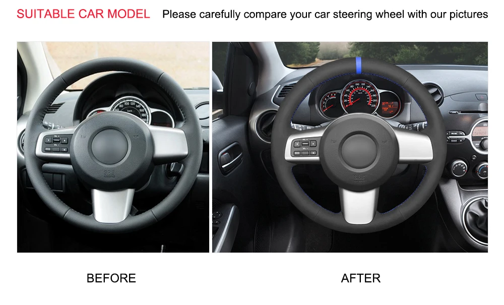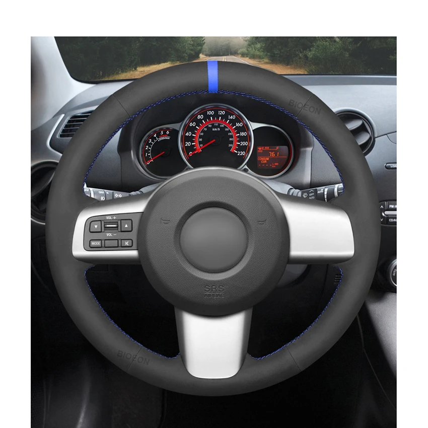Прошитая вручную черная замшевая Оплетка на руль для Mazda 2 2008 2009 2010 2011 2012 2013 2014
