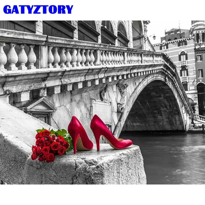 GATYZTORY красные туфли на высоком каблуке алмазная живопись 5D городской пейзаж полный квадратныйкруглый рисунок стразы искусственная ручка