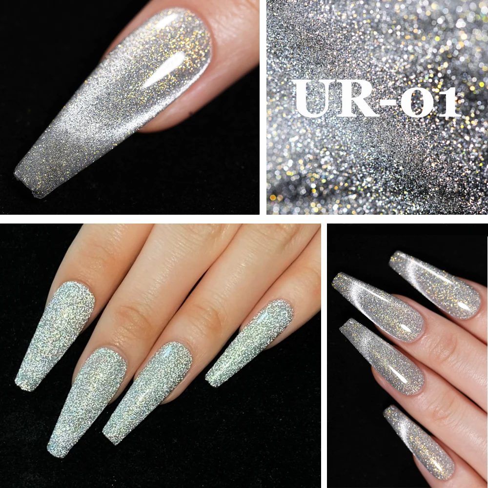 UR SUGAR Серебряный голографический гель отражающий кошачий Гель-ла...