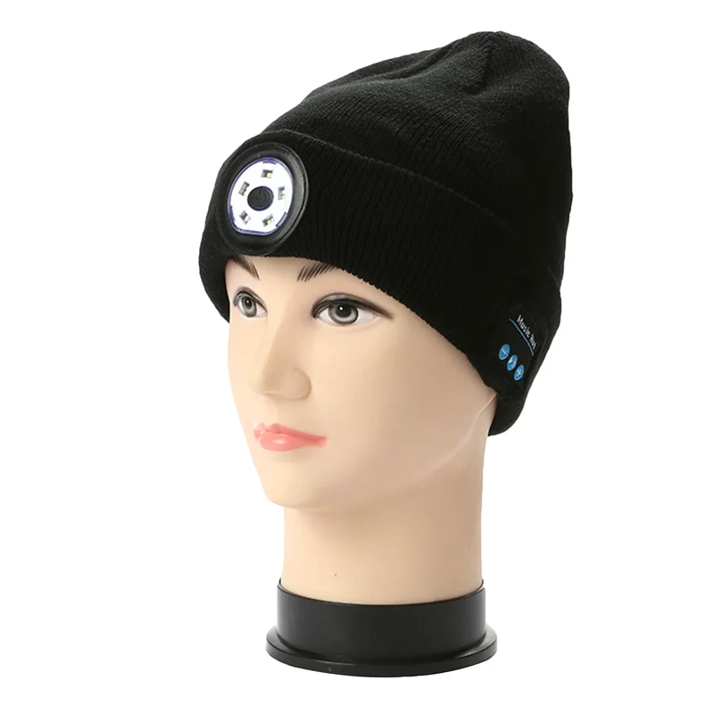 Беспроводная музыкальная Bluetooth-шапка со светильник кой, со встроенными HD стереодинамиками, унисекс, для ночного бега, уличное освещение, аварийный свет
