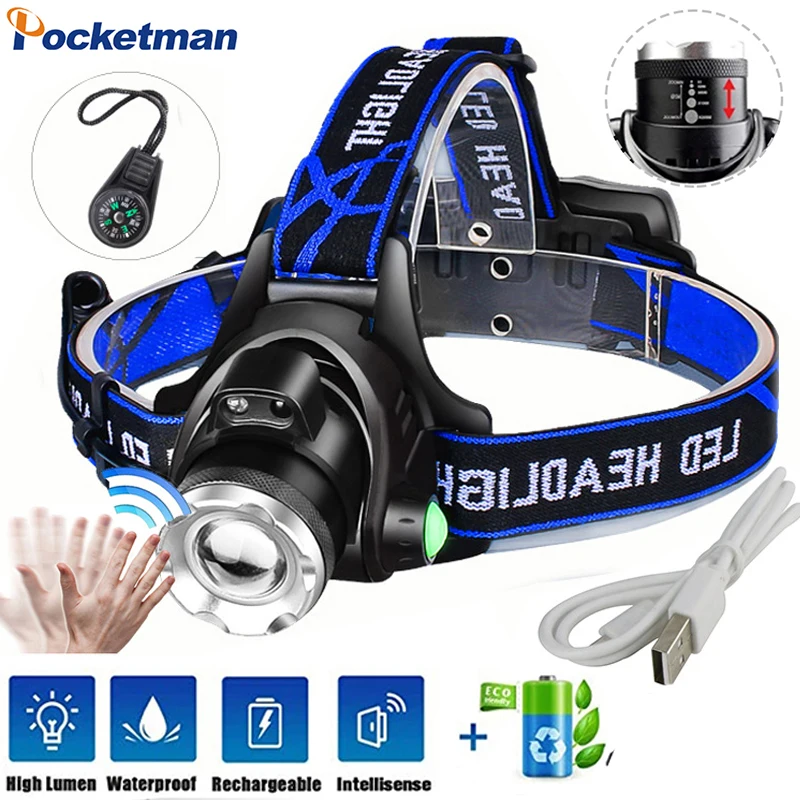 Сенсорный налобный фонарь светодиодный налобный фонарь T6 3 режима ...