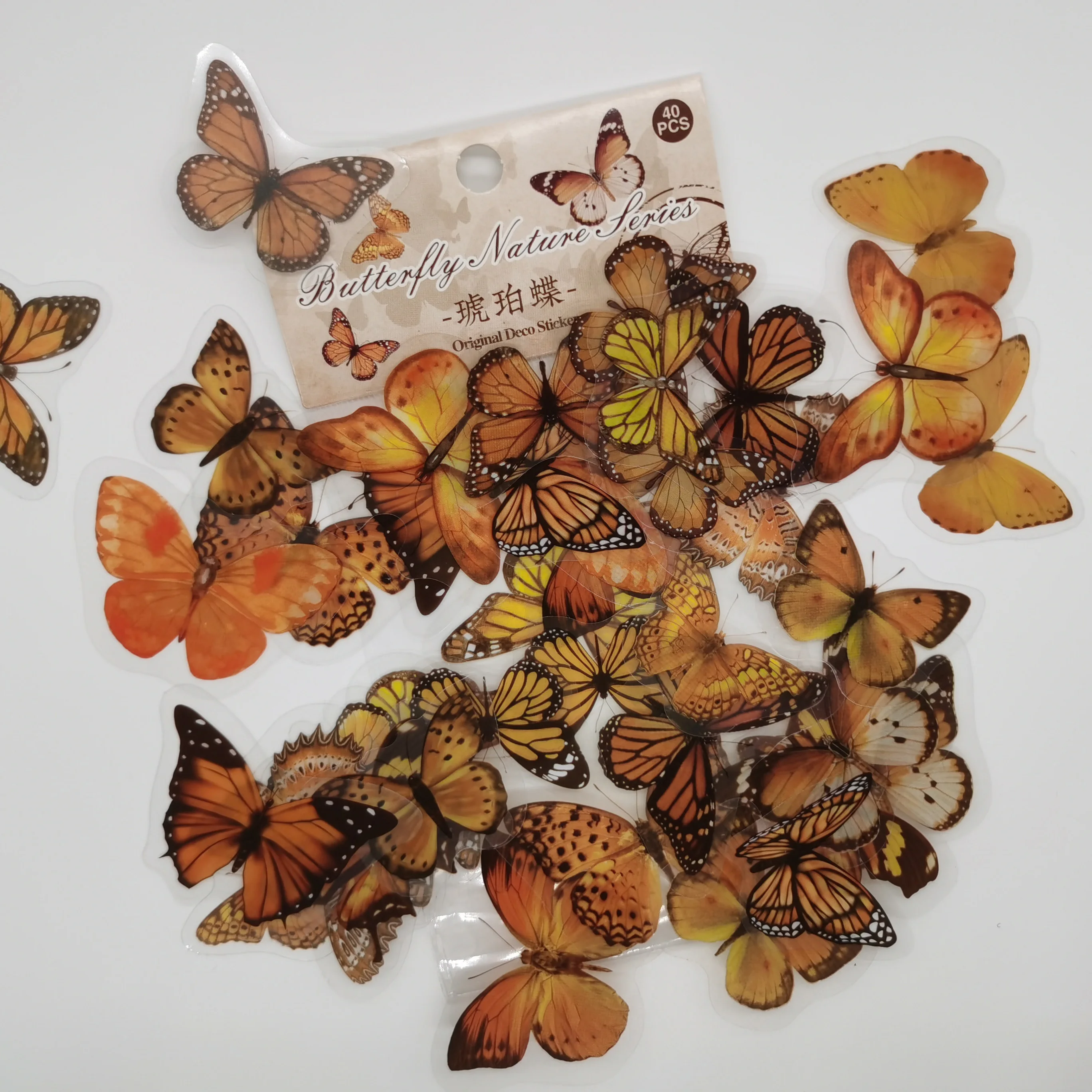 Набор наклеек с бабочками, 40 шт., винтажные наклейки для скрапбуки...