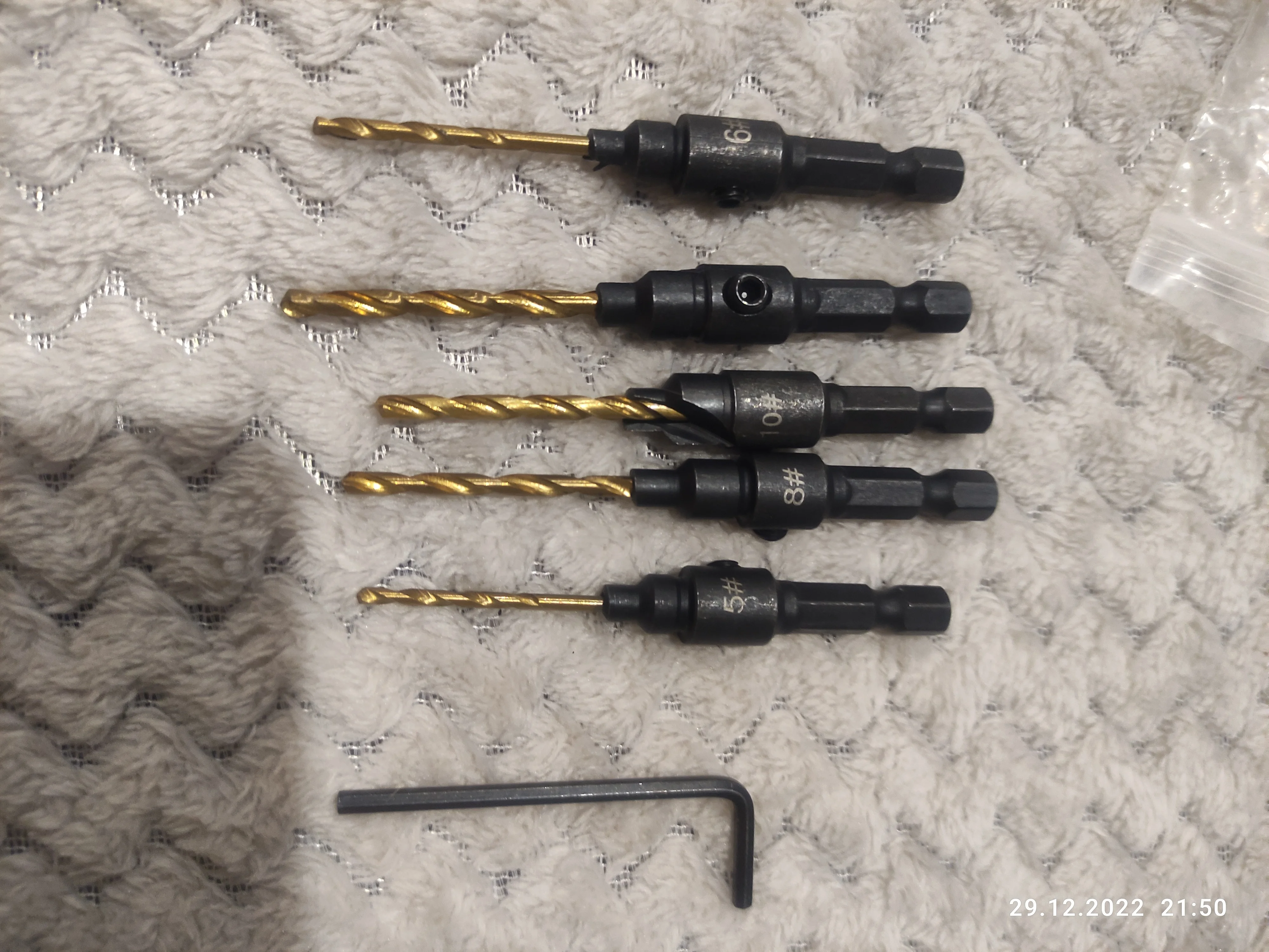 Набор сверл, комплект из 5 насадок с зенкером для работ по дереву