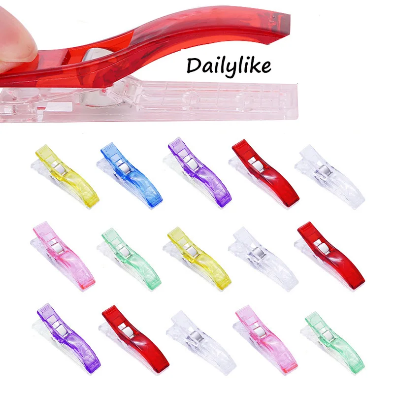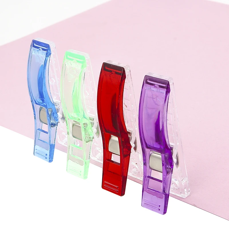 Тип: швейные зажимыРазмер: 5,6x1,2 смЦвет: красный/желтый/зеленый/синий/розовый/фиолетовый/прозрачный/случайный цветКоличество: 10 шт./пакет; 5 шт./пакетМатериал: пластик + металл