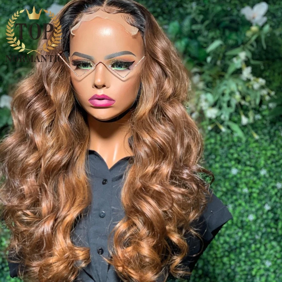 Topnormantic Омбре коричневый цвет свободные волнистые парики для женщин 13x 4 кружевной передний парик Remy из человеческих волос предварительно выщипанная линия волос