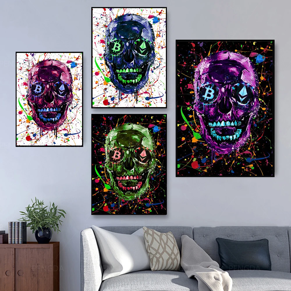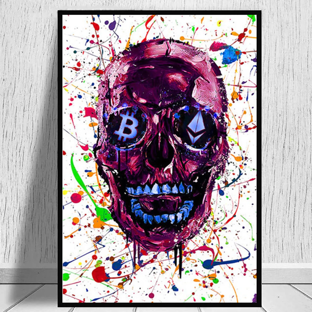 Новый черно-белый цветной постер принты Биткоин этериум Личная Картина на холсте Картина граффити череп настенное искусство роспись подарок