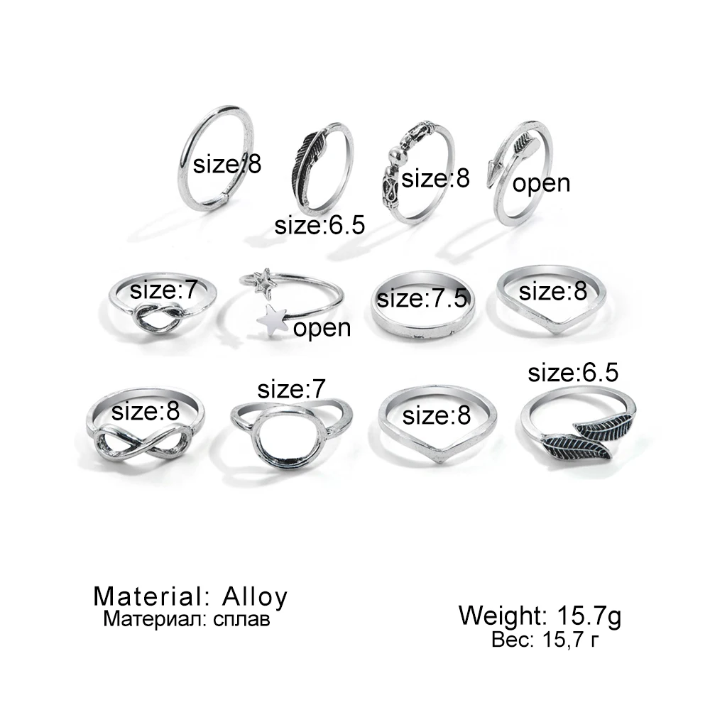KISSWIFE Винтаж Серебряный Цвет Листья Перо Стрелка Звезды Кольца Н...