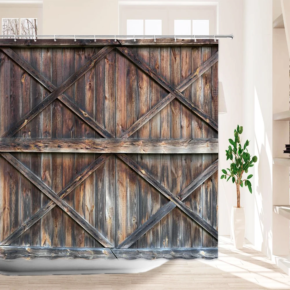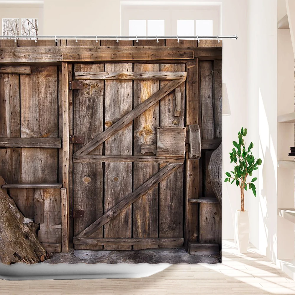 Занавеска для душа в деревенском стиле на дверь сарая, серая и бела...