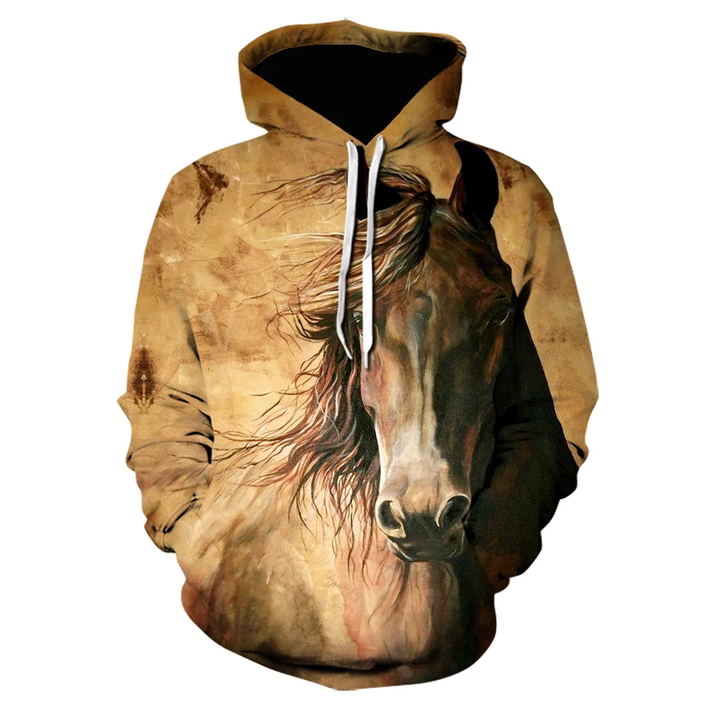 2021 модный мужскойЖенский свитшот 3d толстовки с рисунком лошади ж...