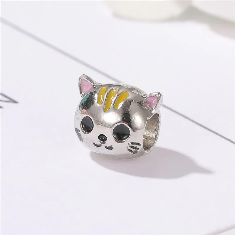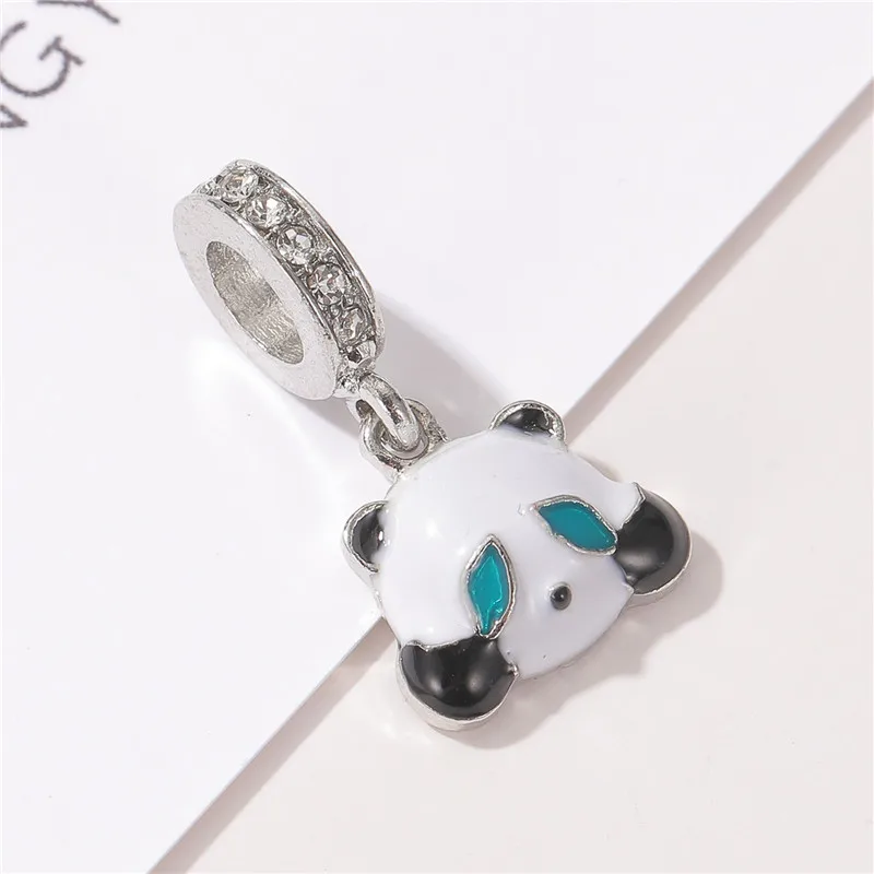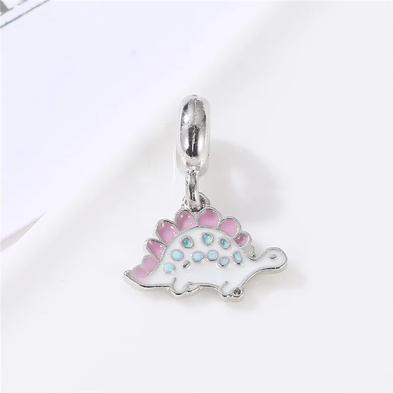 Милая подвеска в виде животного, кошки, панды, динозавра, подходящая для браслета Пандоры, ожерелье, сделай сам, бисер, женская мода, посеребренные ювелирные изделия