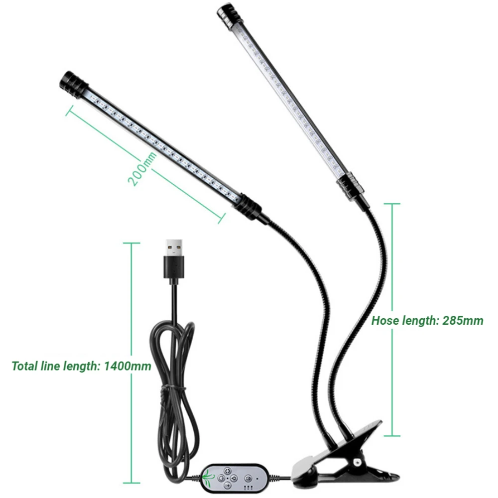Фитолампа светодиодная полного спектра с таймером и USB-портом, 5 В