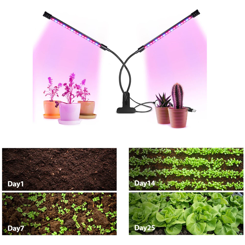 USB-светильник для выращивания растений, 5 В, полный спектр, фитолампа с четырьмя головками для цветов, овощей, комнатный светильник для выращивания красного и синего цветов