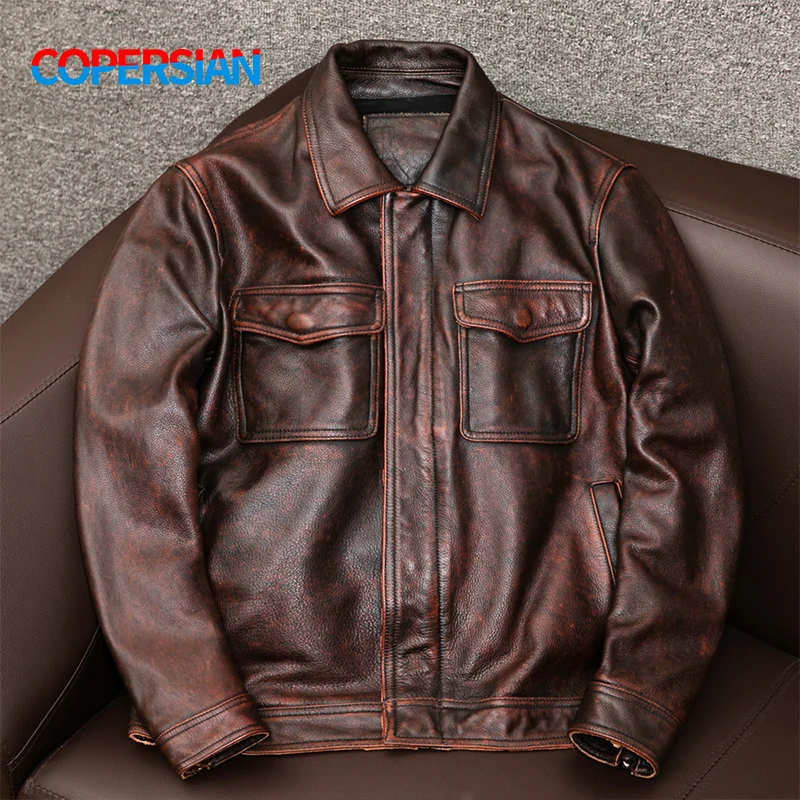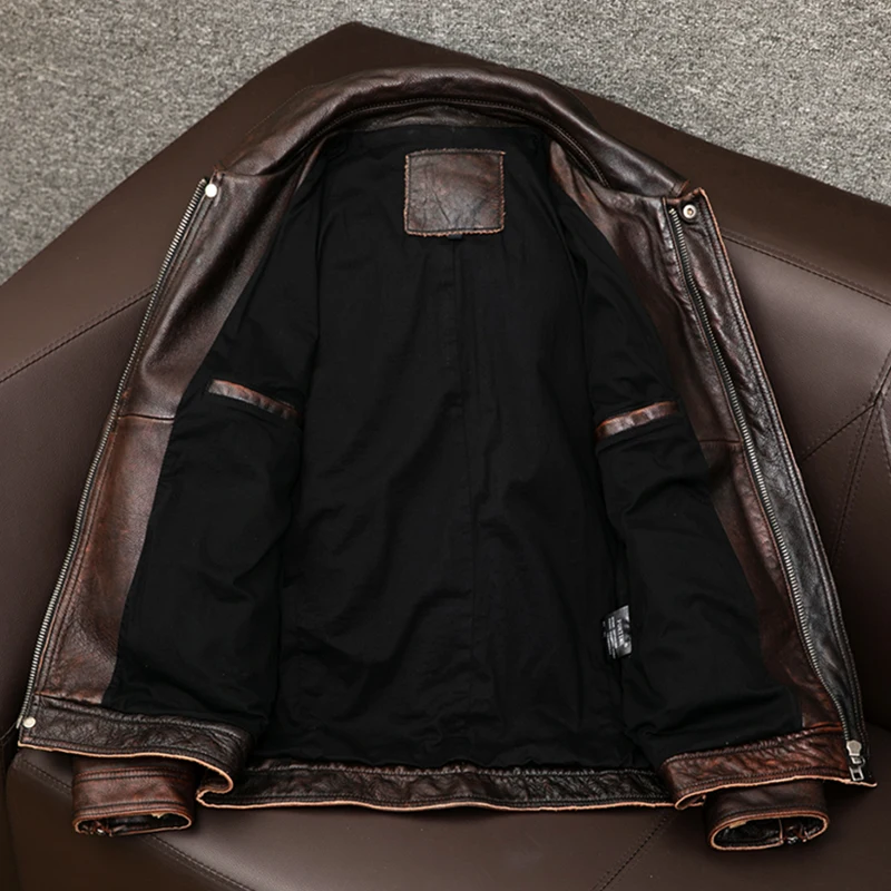 Бесплатная доставка! Мужская винтажная кожаная куртка, красно-коричневая куртка большого размера, мотоциклетное приталенное пальто