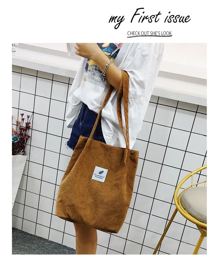 Женская Вельветовая сумка для покупок, тканевая Экологически чистая...