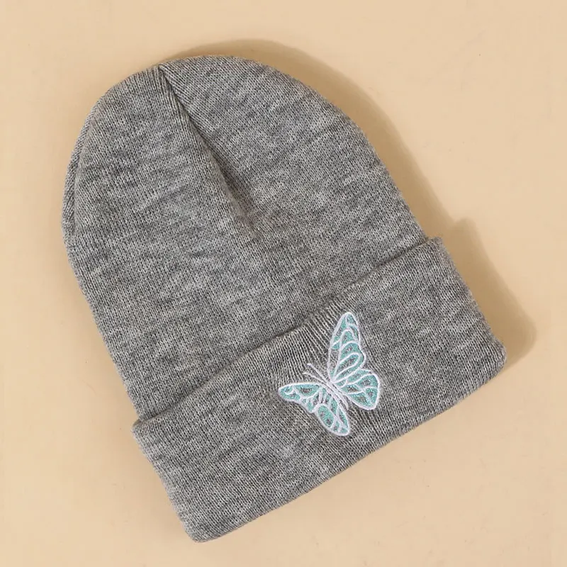 Шапка-бини с вышивкой-бабочкой, новинка, зимние шапки унисекс, женские и мужские однотонные осенние Вязаные Шапка, шапка, шерстяные шапки в стиле хип-хоп