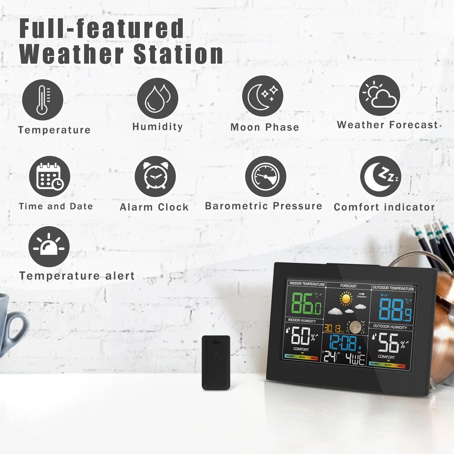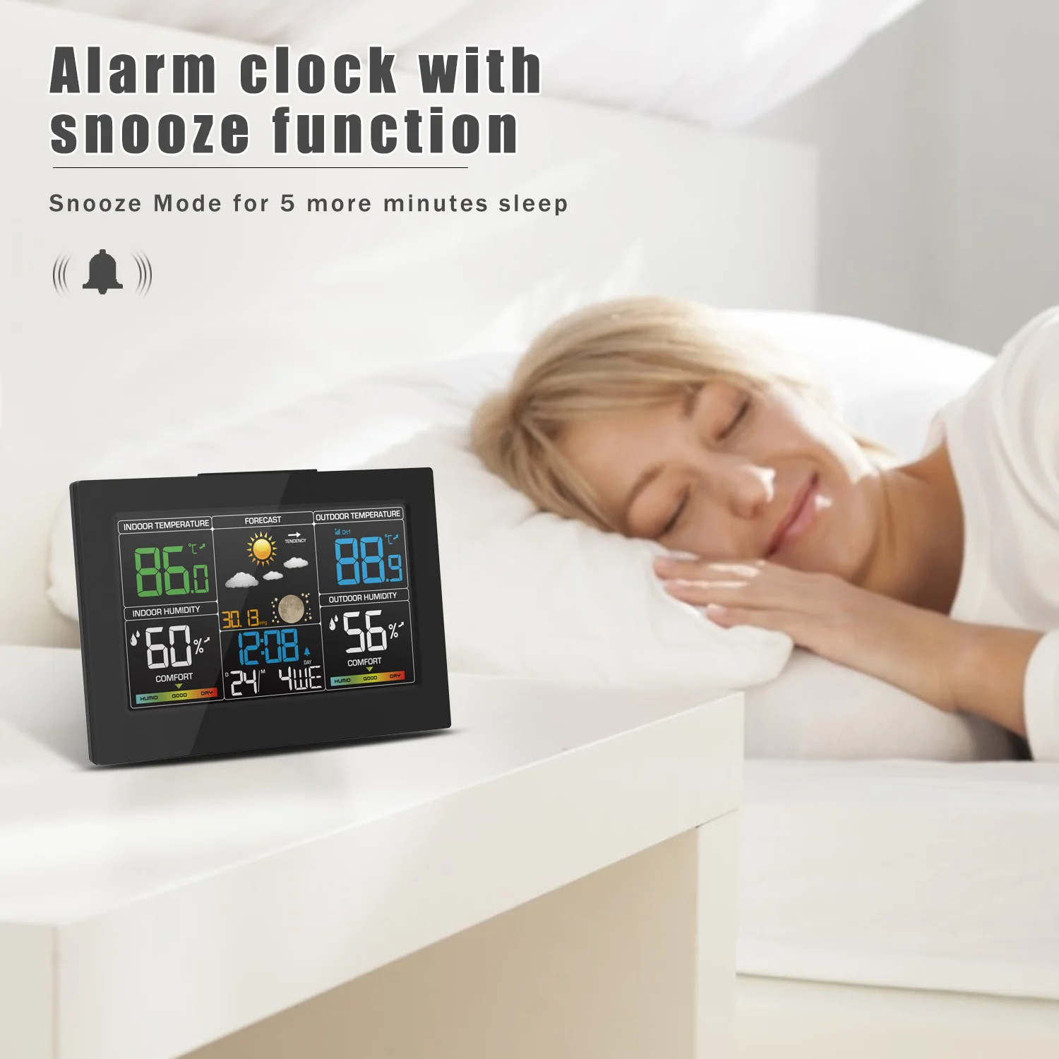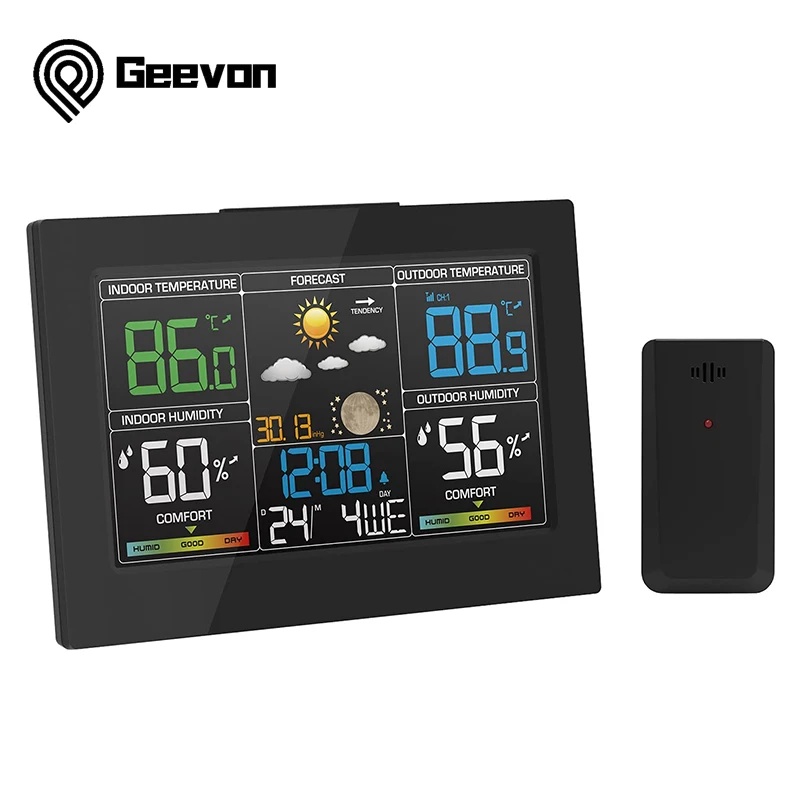 Беспроводная метеостанция Geevon, цифровые настольные часы с функцией повтора температуры и влажности, будильник для дома и улицы, термометр