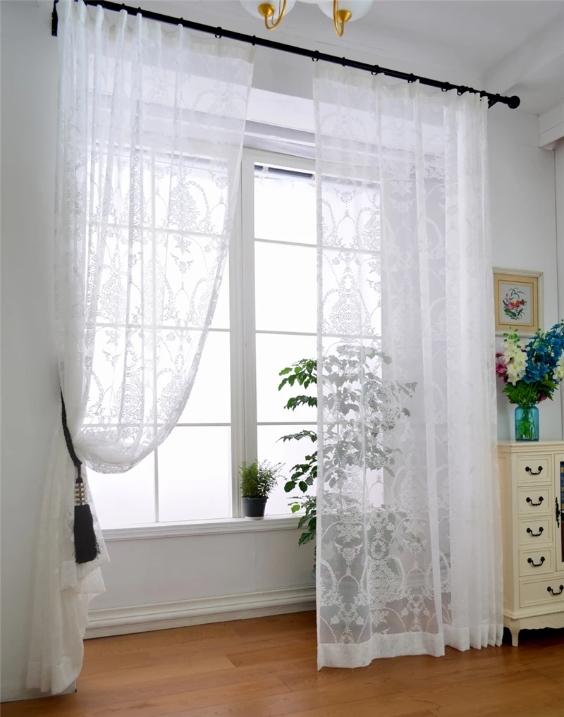 Черно-белые тюлевые шторы с вышивкой для гостиной, кружевные римские прозрачные Занавески Из вуали, раздвижные двери, на заказ, 1 шт.