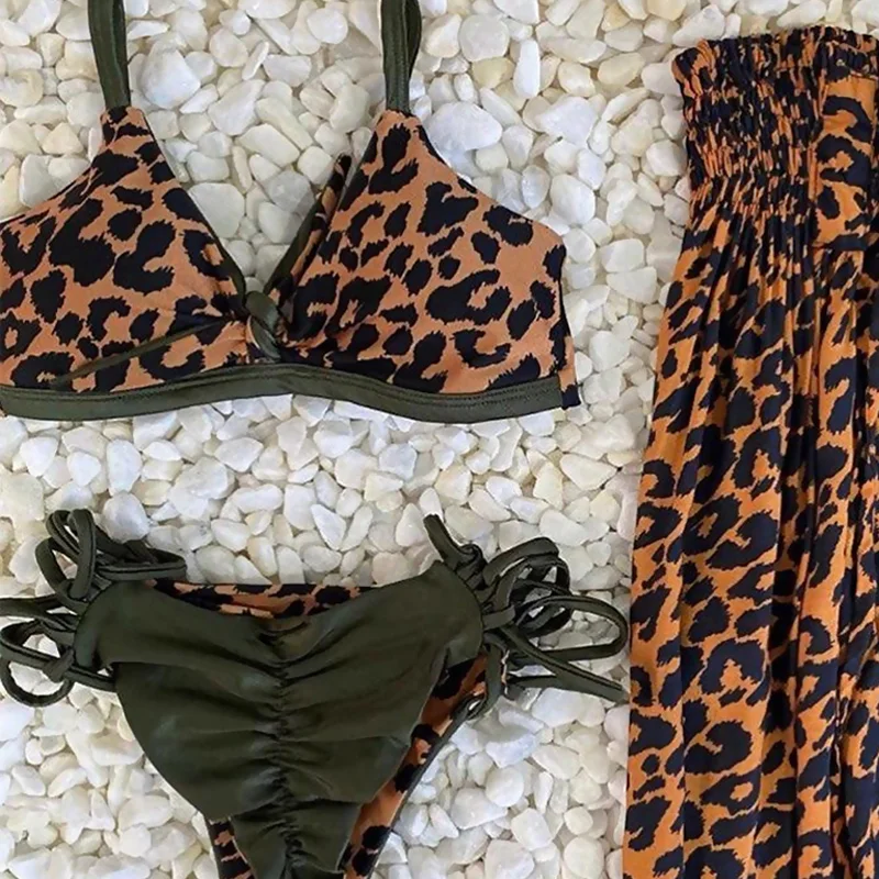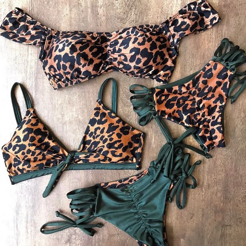 Женский купальник с леопардовым принтом, пикантный купальник с эффектом пуш-ап, женский купальный костюм на шнуровке, купальный костюм со складками, комплект бикини с вырезами для пляжа, 2021
