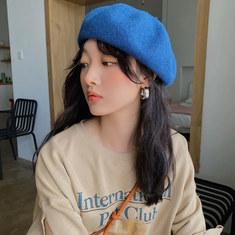 Винтажный Однотонный женский берет французский художник теплая шерс...