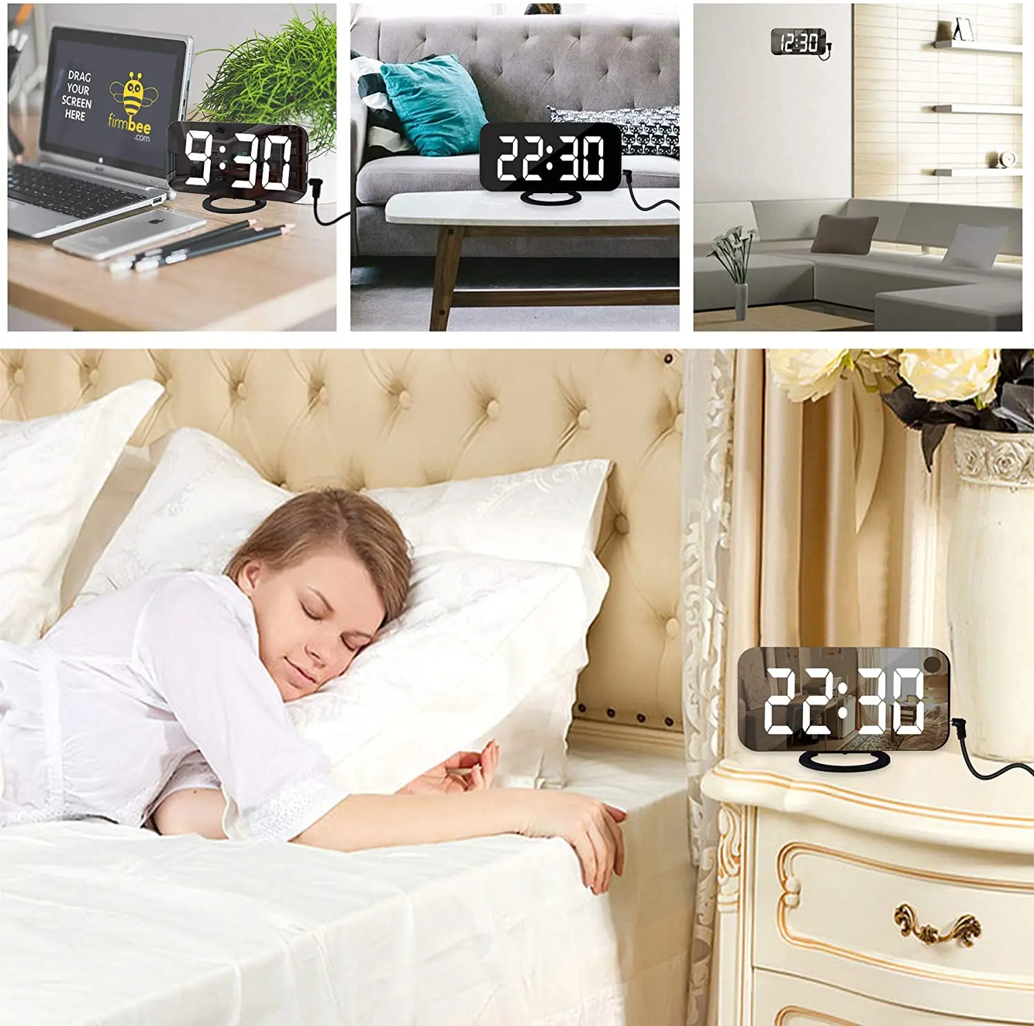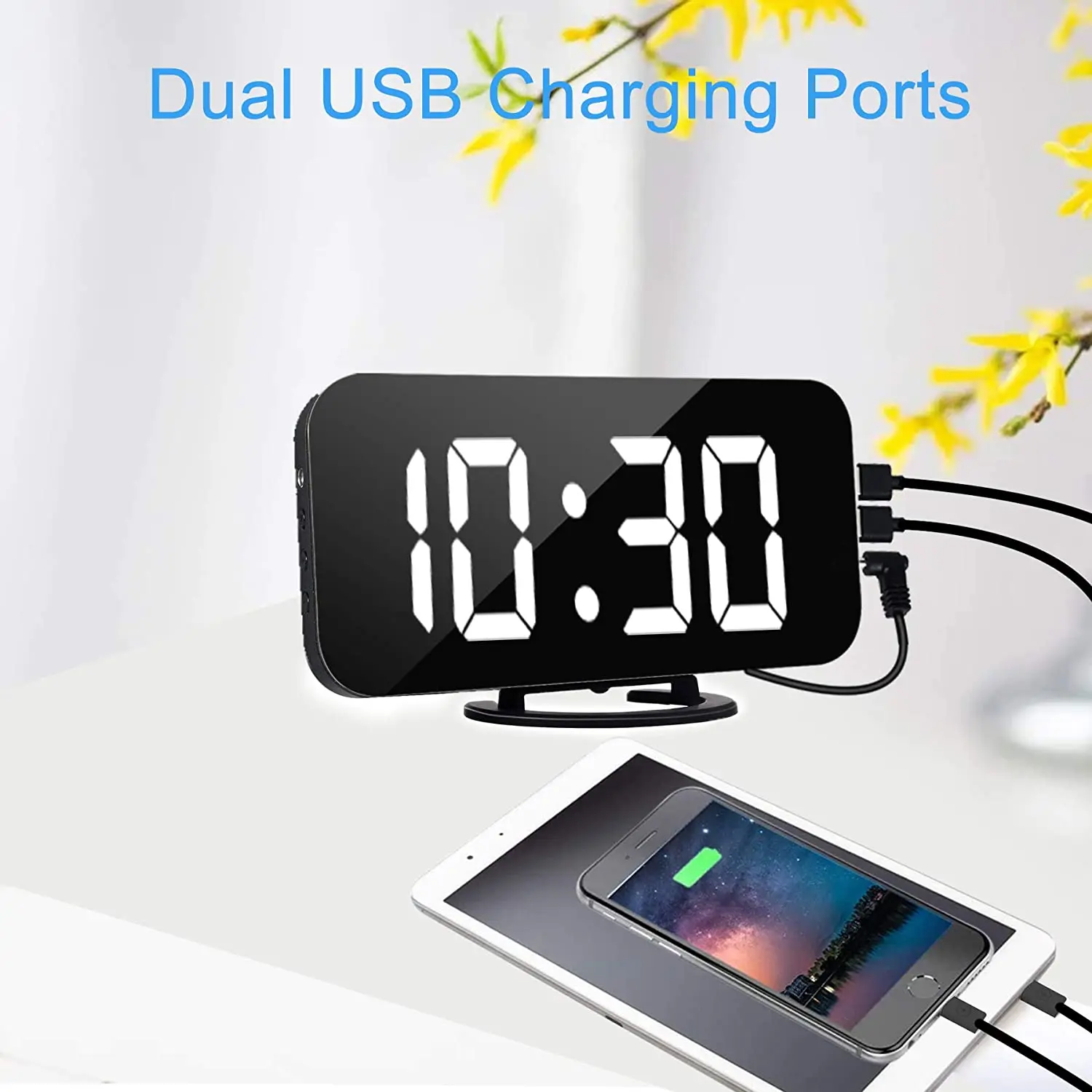 Настольные часы с функцией повтора времени и температуры, с ночным дисплеем, 2 USB-порта