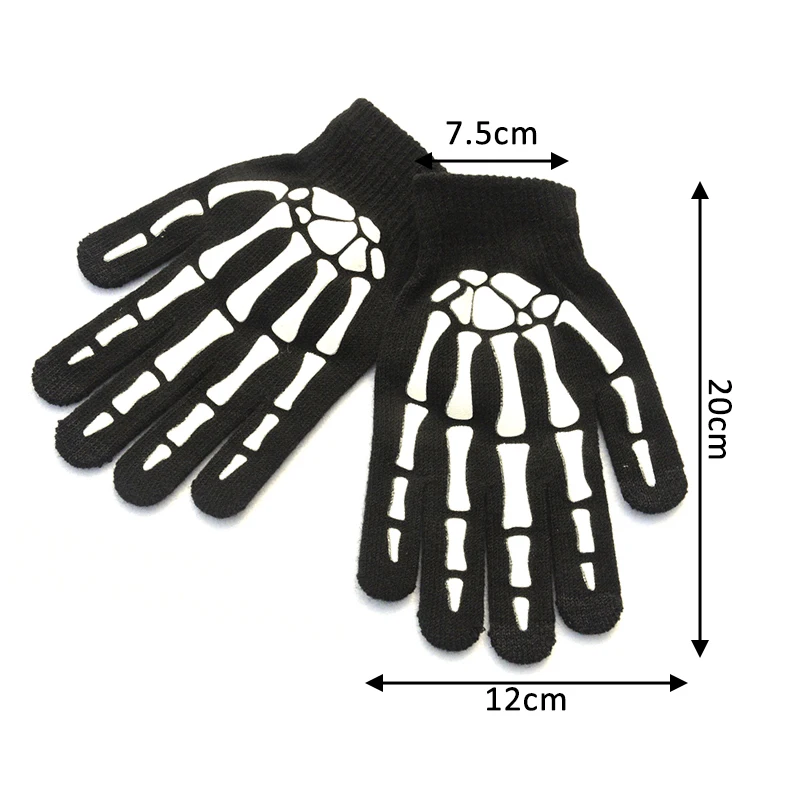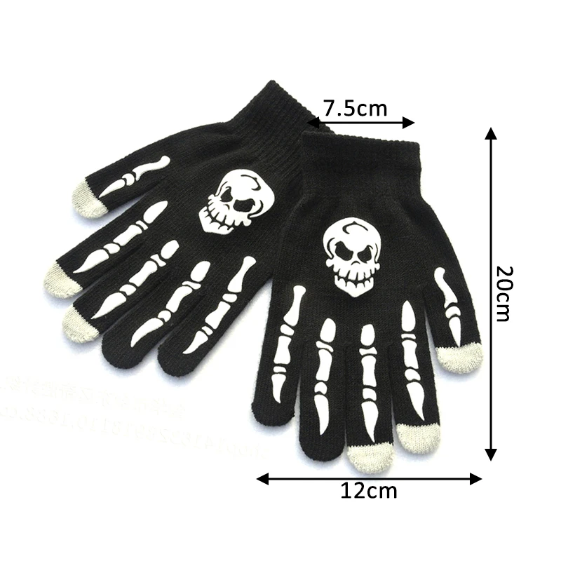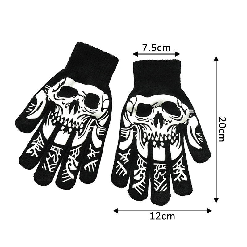 Светящиеся перчатки для Хэллоуина, зимние теплые Нескользящие ужасные перчатки для рук, черепа, гримаса, варежки, теплые перчатки унисекс