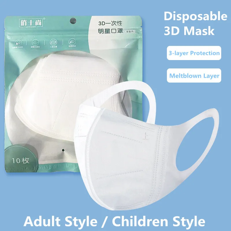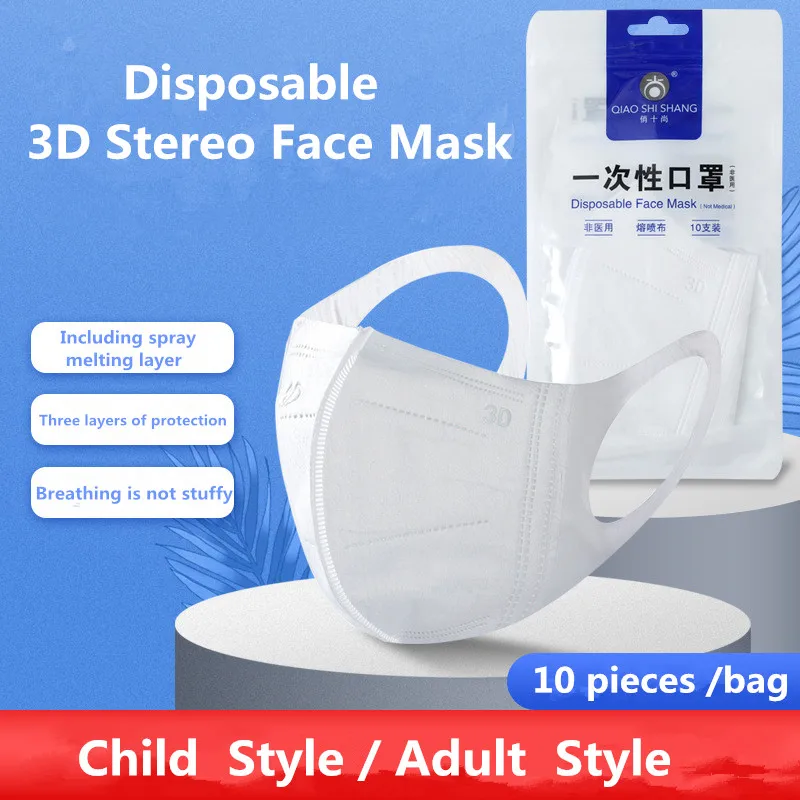 10 шт. одноразовая 3d Защитная маска для лица для взрослыхдетей тон...