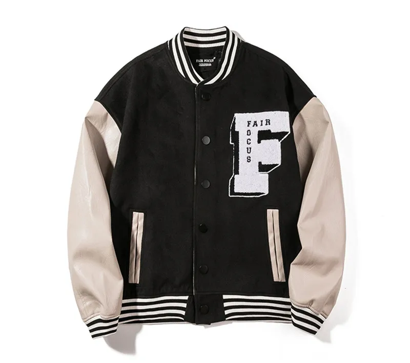 Хип-хоп бейсбольная куртка Мужская и Женская 3D буква F Японская уличная одеждаХарадзюку колледж пэчворк блок бомбер женская университетская куртка
