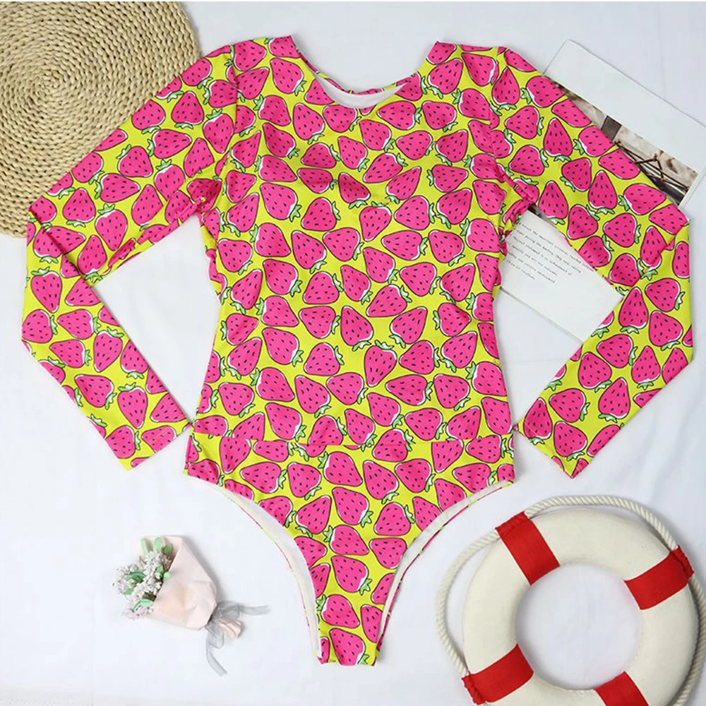 Женский купальник с длинным рукавом, открытой спиной и фруктовым пр...