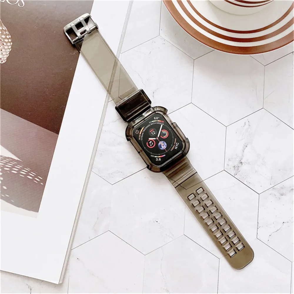 Чехол + ремешок для Apple Watch Band 40 мм 44 мм 42 мм 38 мм аксессуары мягкий силиконовый прозрачный браслет iWatch 6 se 5 4 3 2 1