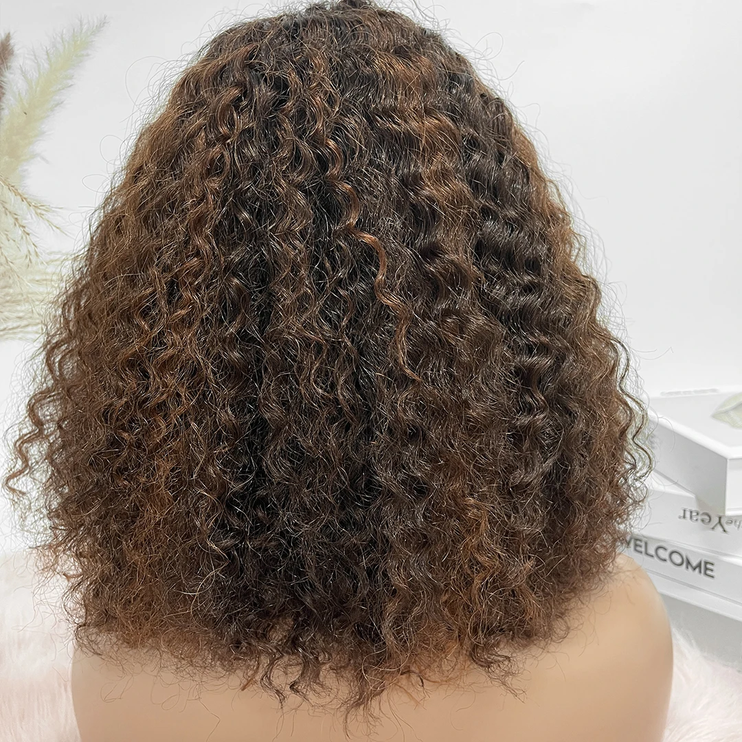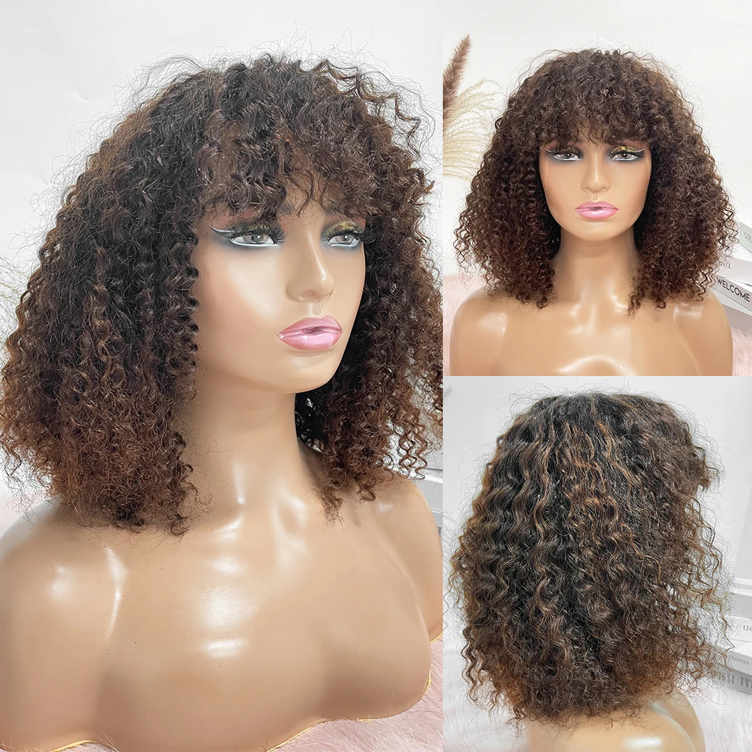 Парик из вьющихся человеческих волос коричневого цвета с челкой, плотность 180%, волнистые, без клея, парики из человеческих волос для черных женщин, бразильские волосы Remy