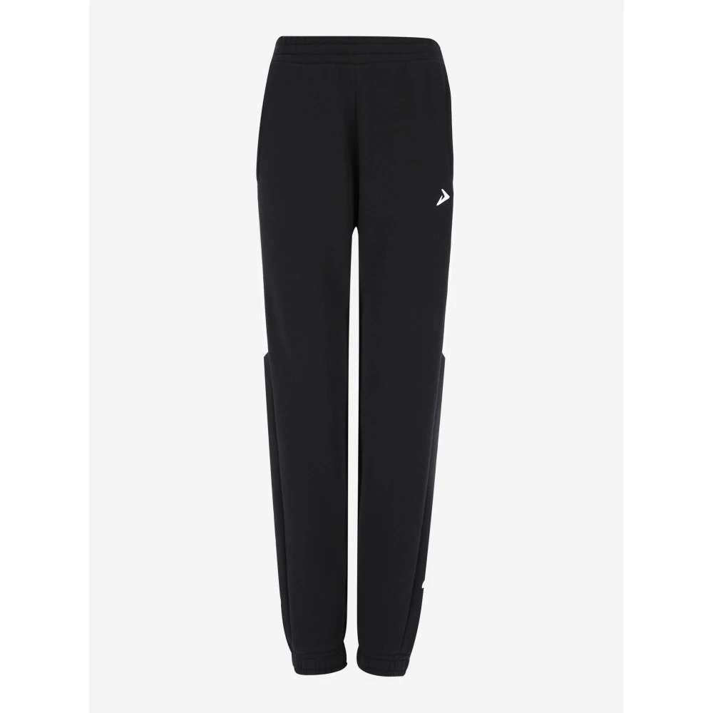 Брюки, выполненные из смеси хлопка и полиэстера. Детали: прямой крой, широкий эластичный пояс, 2 боковых кармана.