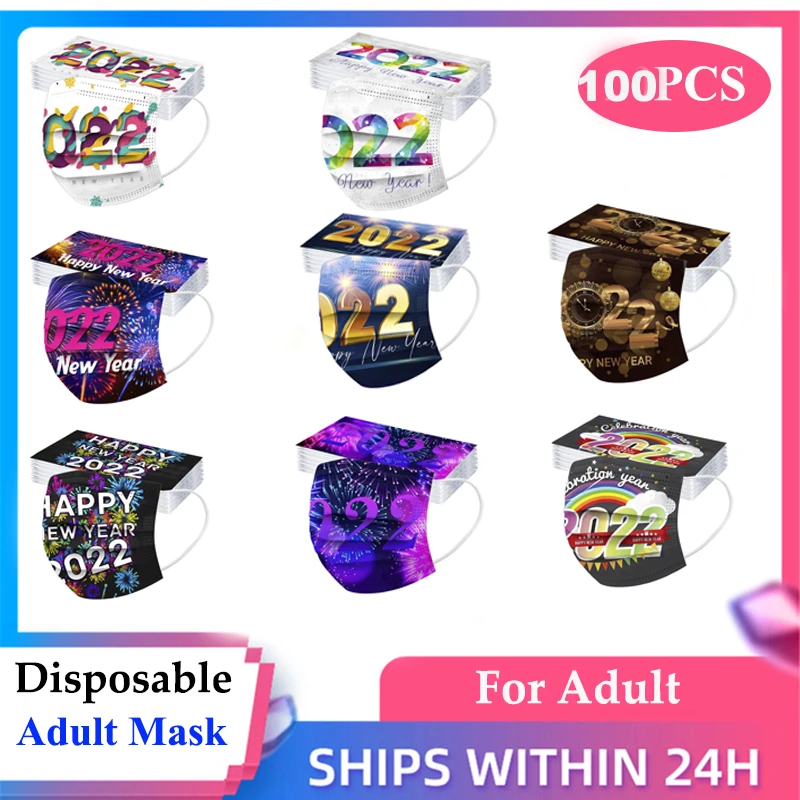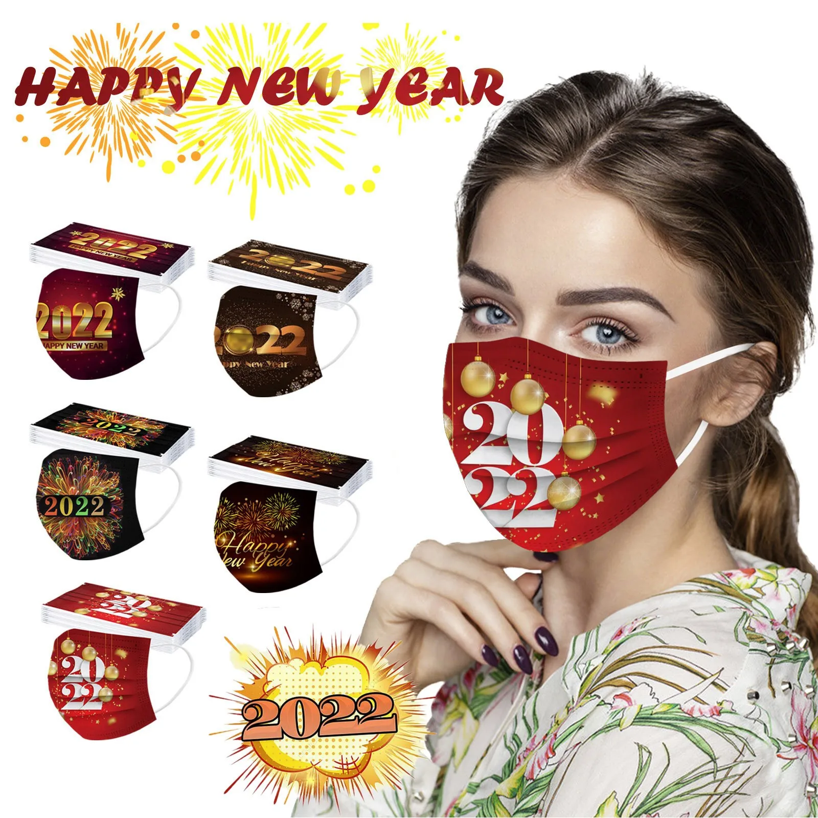 10 шт. маски для взрослых 2022 Маска с новогодним принтом для женщи...