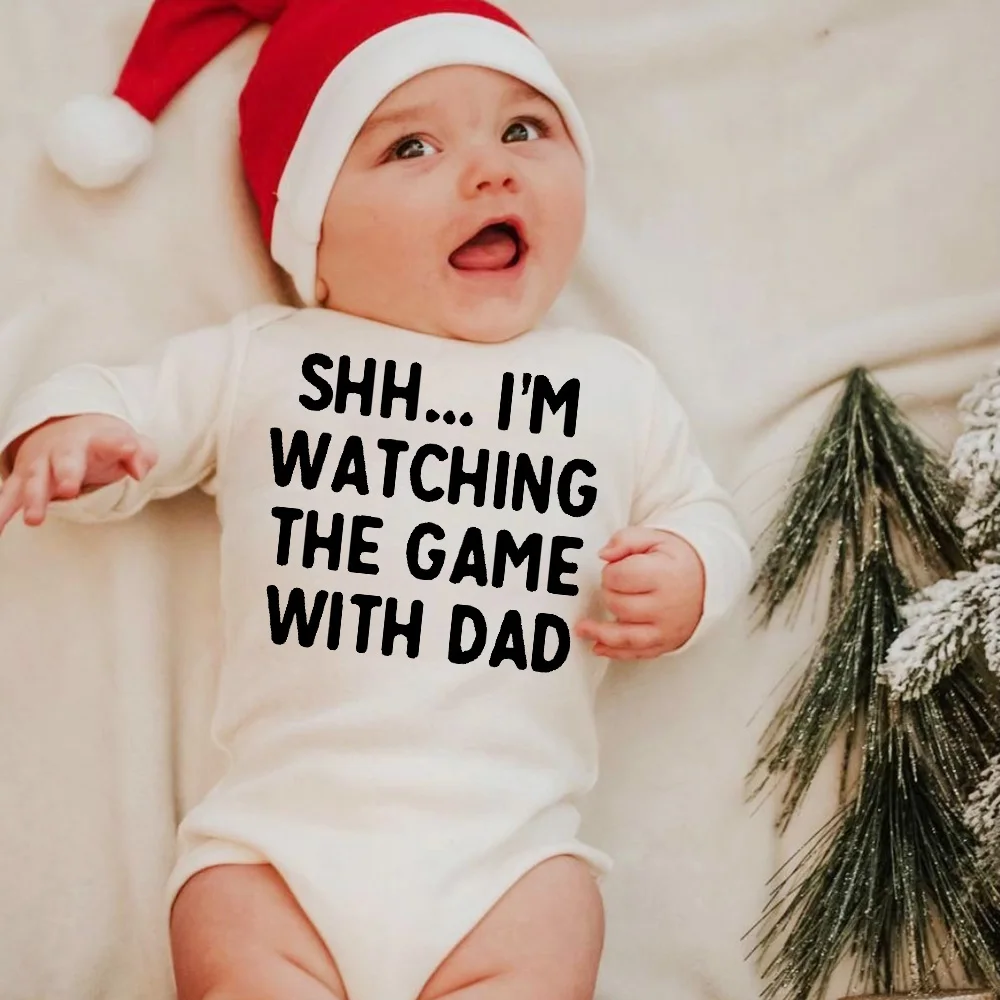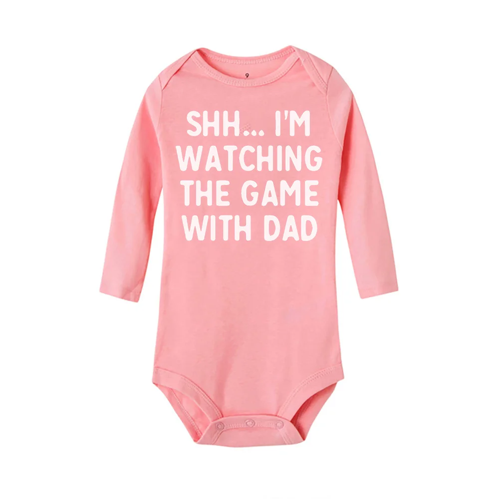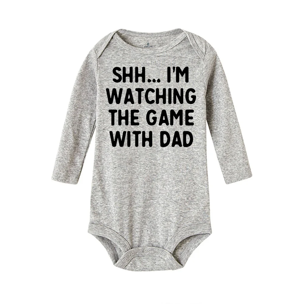 Shh, я наблюдаю за игрой с папой, комбинезоны для новорожденных, детские комбинезоны с забавным принтом, зимняя одежда для маленьких мальчиков и девочек, комбинезоны с длинным рукавом