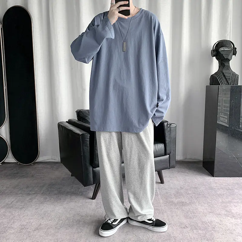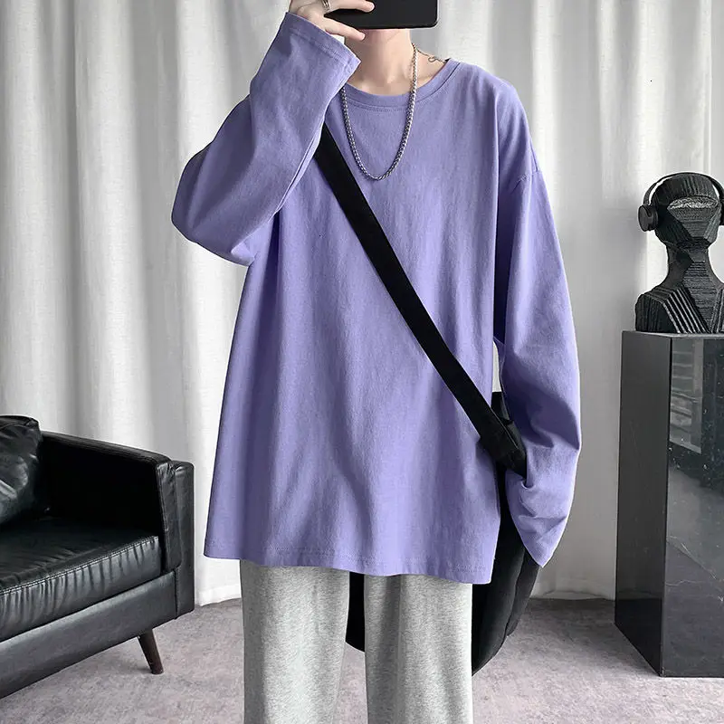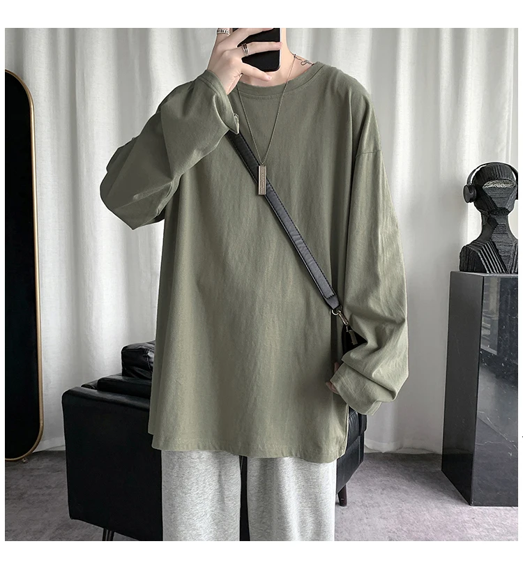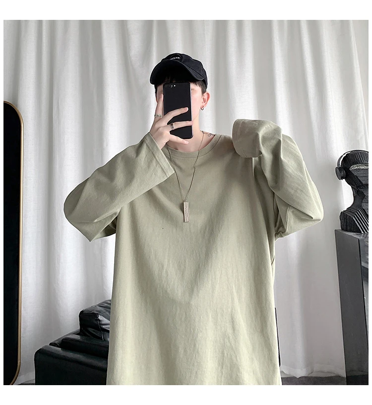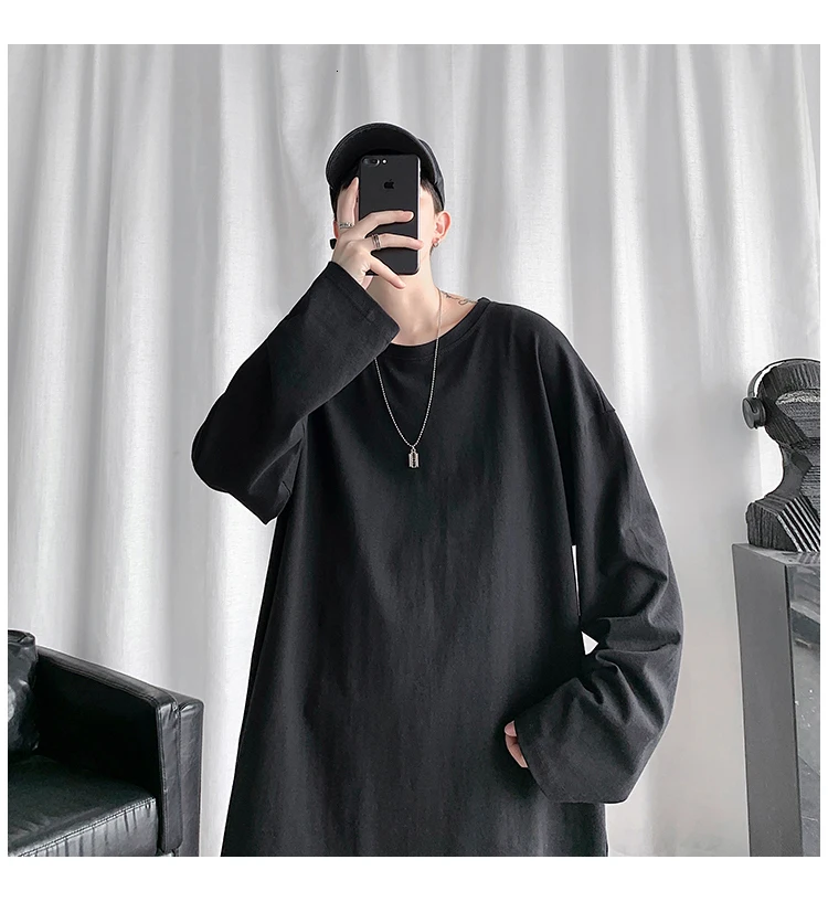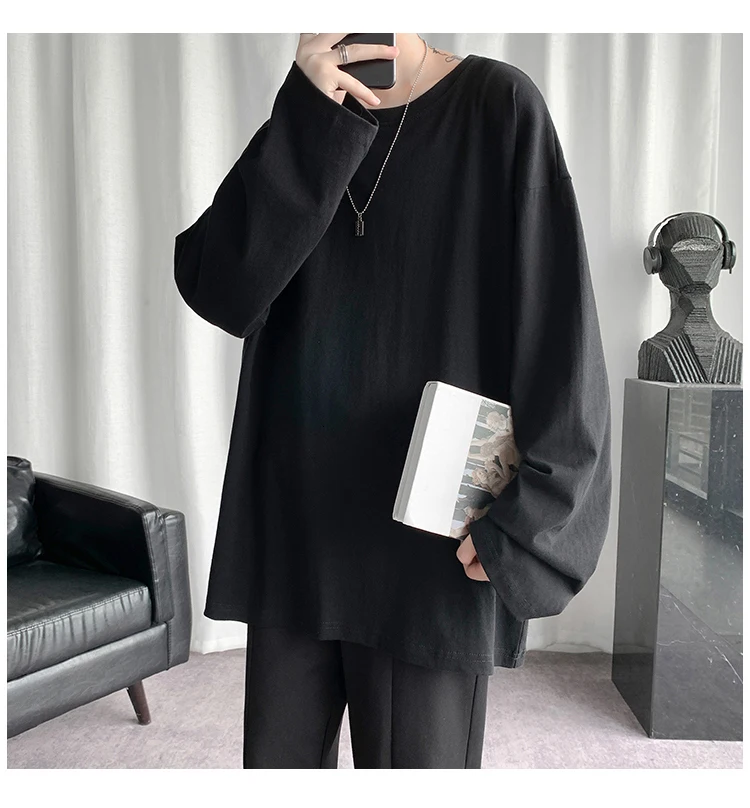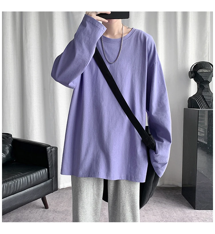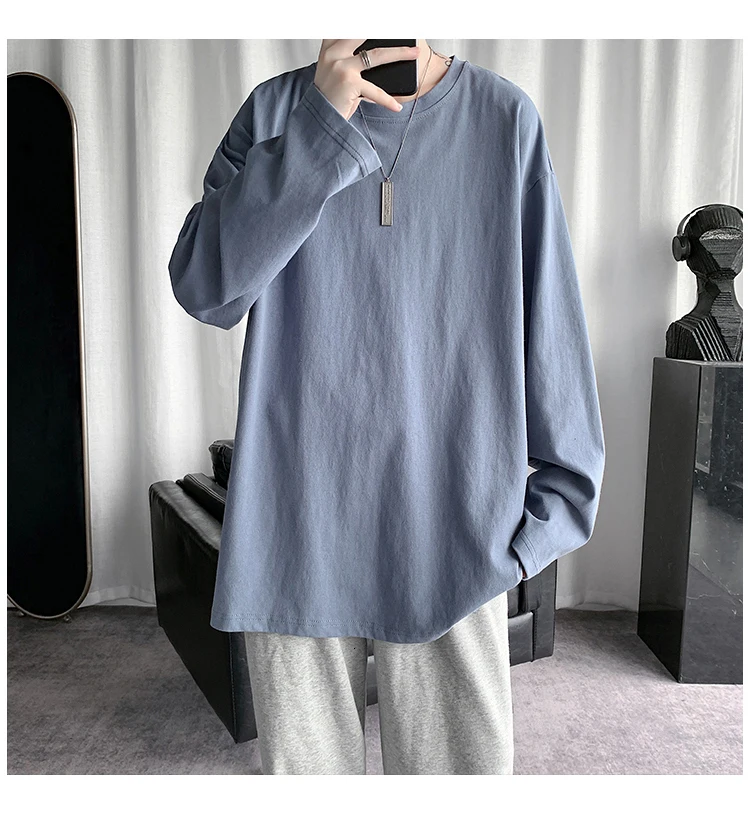 Футболка Базовая однотонная для мужчин и женщин, тенниска с круглым вырезом и длинными рукавами, повседневная майка в Корейском стиле, весна 2021