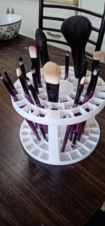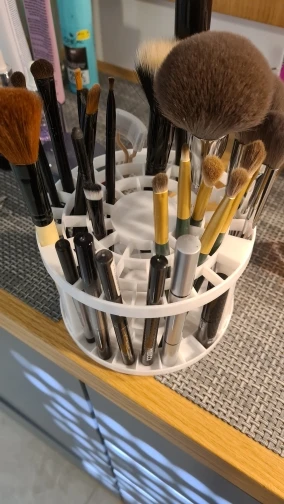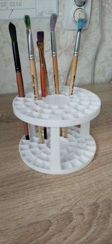 хорошая, давно хотела подставку под кисти - это удобно. но кисти с толстой ручкой не входят, так что точно не под все кисти, включая для косметики, поэтому для косметических костей я бы такую не заказывала. Такую подставку нашла в художественном магазине и дешевле, ну ничего страшного)