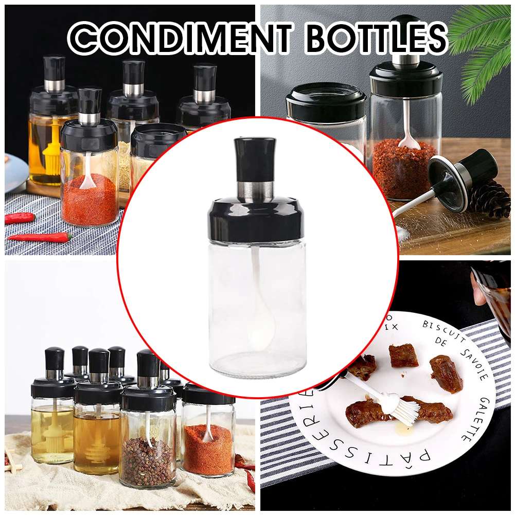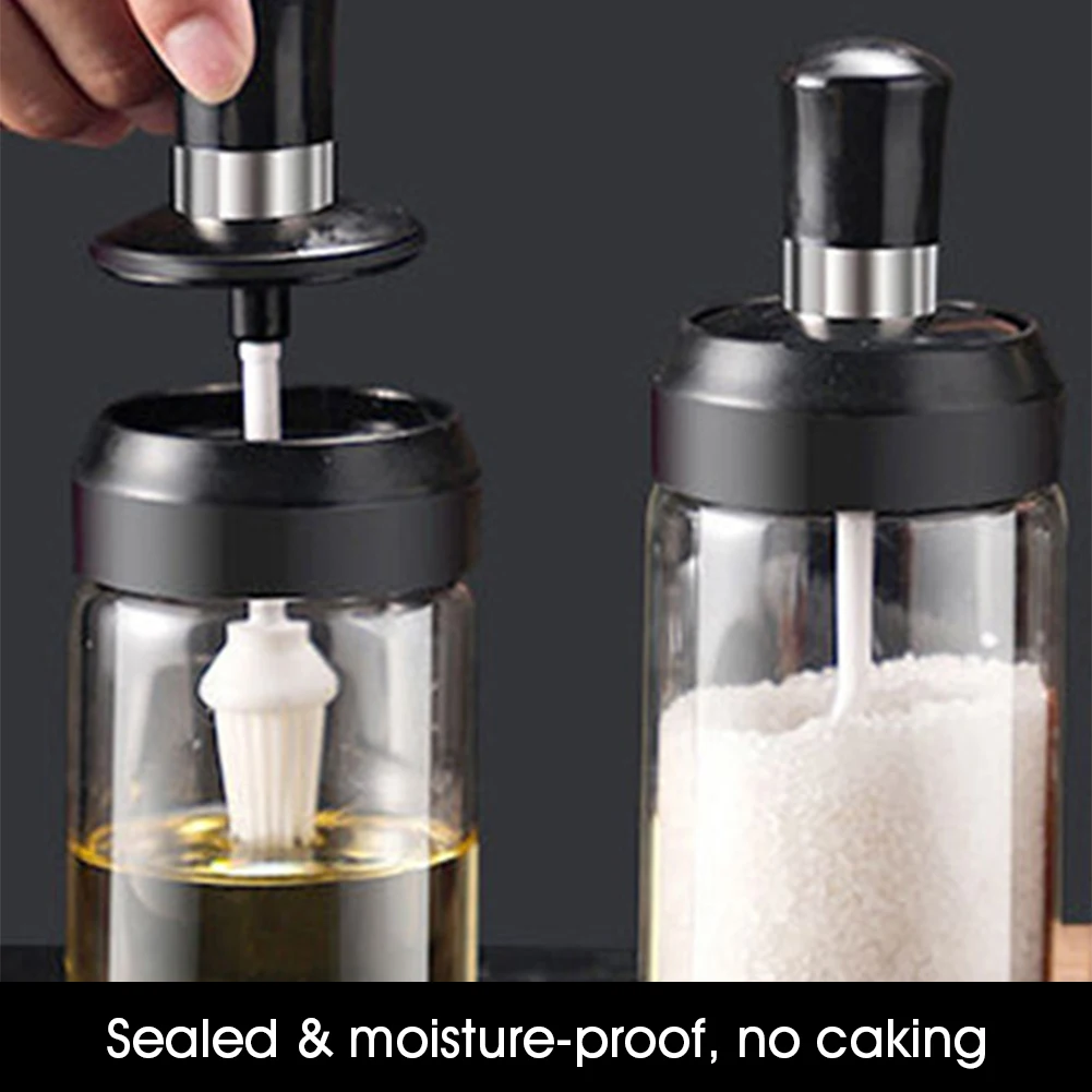 Стеклянная коробка для приправ, искусственная зерна с ложкой, щетка для соли, сахара, Чили, масло для кухни