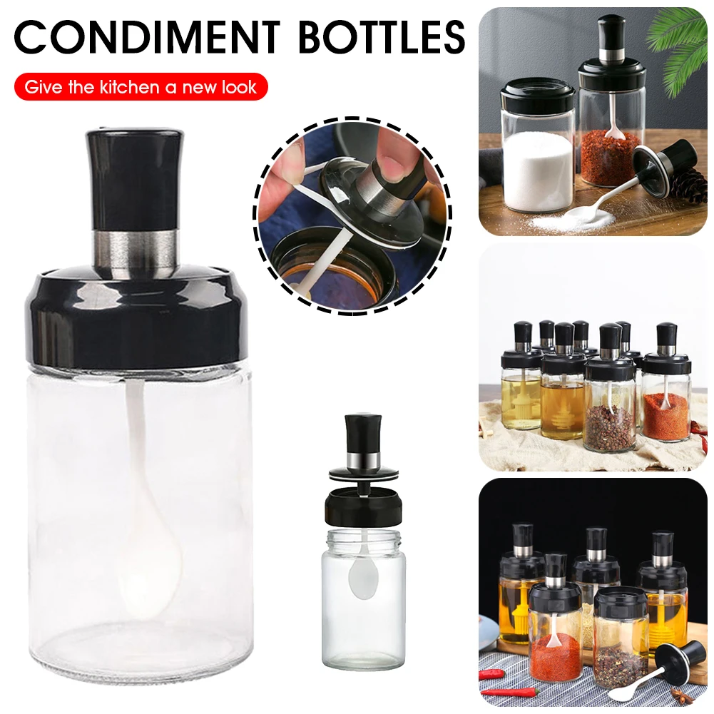 * 1. Изготовлен из высококачественного стеклянного материала. Прозрачный дизайн коробки для приправ позволяет легко определить приправы, такие как соль, сахар, Чили, масло и так далее, быстро и удобно найти нужную пряность.